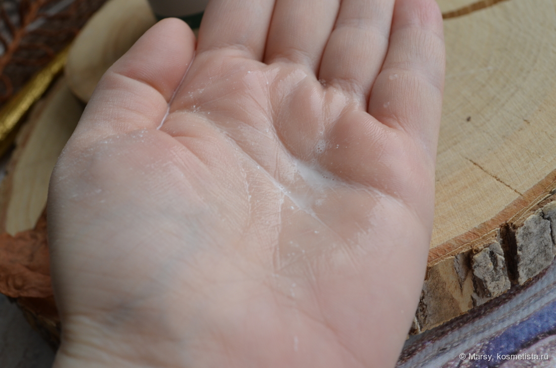 Смешивается с водой быстро, образует мелкую и тонкую молочковую субстанцию, но средства нужно много, примерно с крупную фасолину. Иначе никак не ощущается на коже. На фото видно, что пудры мало и молочка почти нет.