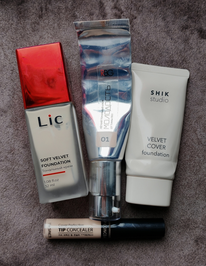 Shik studio Velvet cover foundation — отлично подошёл мне для ежедневного использования. Хорошо лежит на коже, имеет среднюю степень перекрытия, даёт живой матовый финиш, самофиксируется. Переживает в приличном состоянии (с матирующими салфетками) восьмичасовой рабочий день.