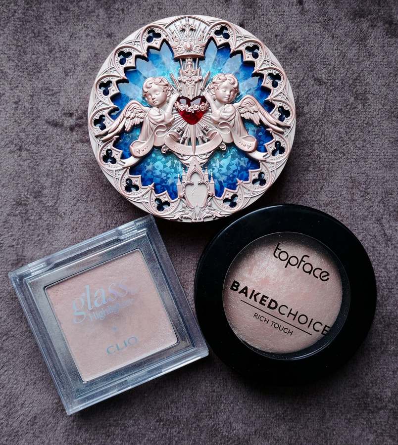 Clio Luxury Koshort Glass & highligter 01 Moon glow — нежный, шелковистый хайлайтер без крупных блесток. При вуальном нанесении даёт мягкое свечение, при наслаивании получаем яркое сияние. Хайлайтер красиво смотрится на коже, у него отличное качество и прекрасная стойкость.