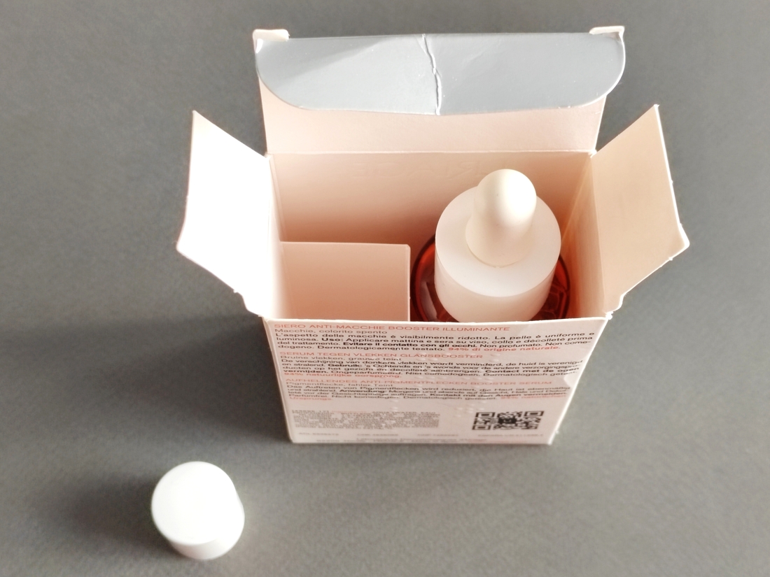 Внутри коробки две секции, разделённые перегородкой. В одной — находится бутылёк с сывороткой, во второй — сама пипетка-дозатор. Обычно сыворотки приходят уже в комплекте с ней.