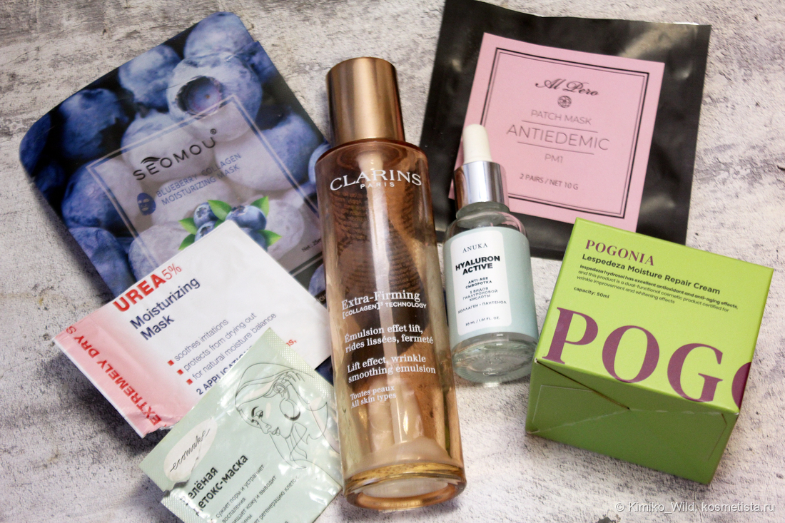 «Пересыворотка» или «недокрем», точнее, эмульсия Clarins – хорошая, но цена стала совсем неадекватной… Крем Pogonia оказался бомба-пушка (пустую баночку выбросила в поездке). Гиалуроновая сыворотка Anuka – середнячок. Тканевая маска (ну, так побаловаться), две пары тканевых патчей Al Pero одной упаковкой (дорого-богато, а по факту тот же эффект, что от бюджетных – главное, заранее охладить), две маски в саше…