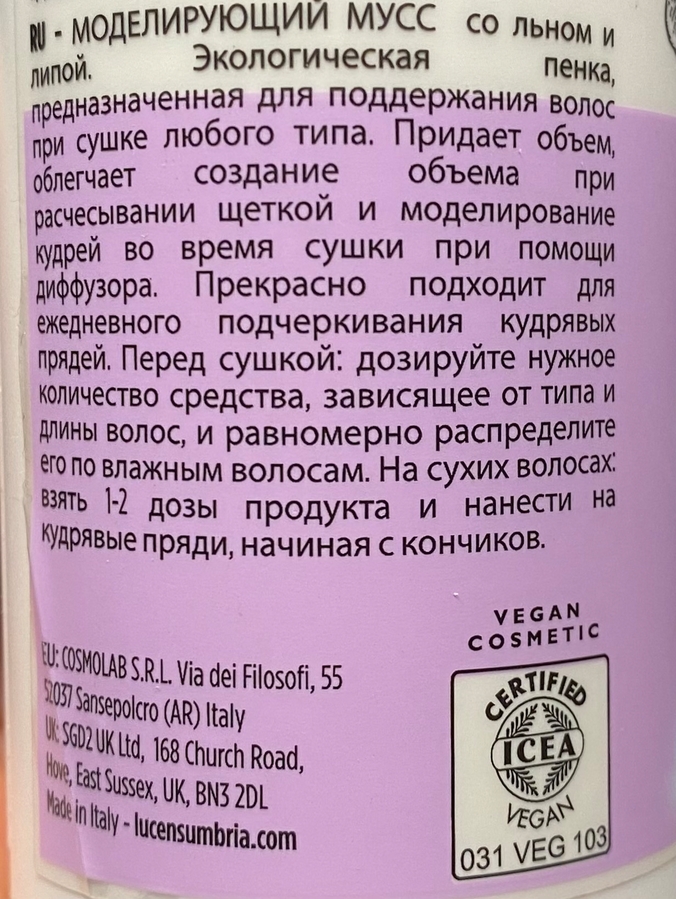 Ну что ж, продолжаю серию отзывов о средствах для укладки волос, которые мне, увы, не подошли. Сегодня речь пойдёт о Муссе для укладки волос Lucens Umbria Mousse Modellante.