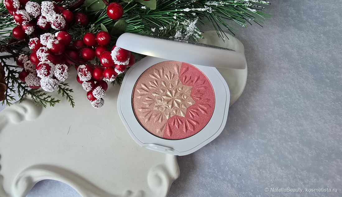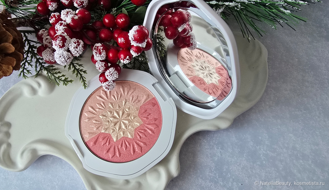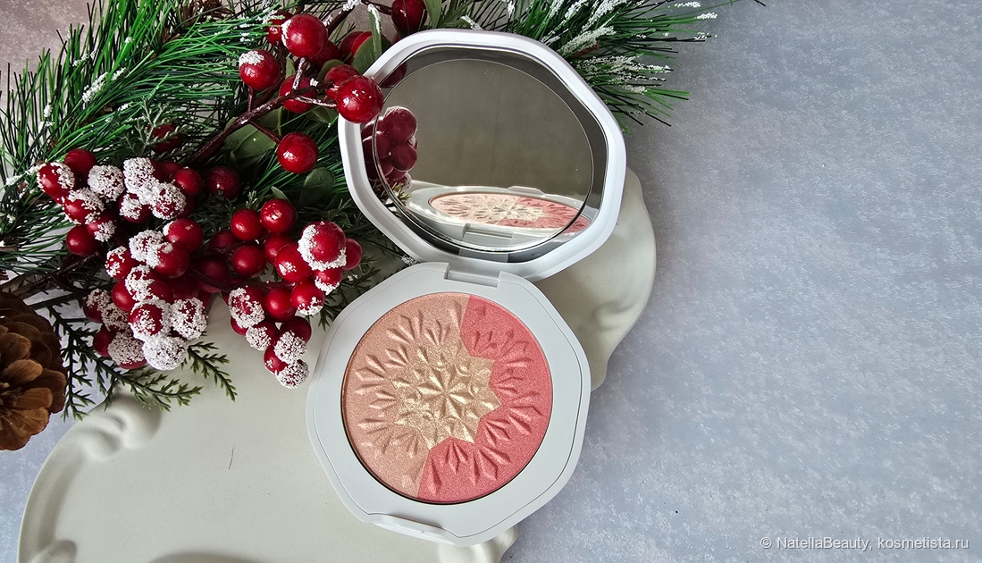 Я уже рассказывала про сияющую помаду из этой коллекции, пришло время показать самый желанный продукт — румяна — хайлайтер. И хотя продукт заявлен как хайлайтер, но это скорее сияющие румяна.