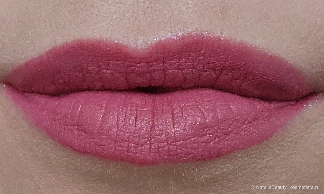 Текстура нежная, массовая. Через секунд 30 становится матовой. У меня всегда очень сухие губы, с трещинками и корочками, я не чувствую от этой помады сухости, она не подчеркивает корочки и лежит равномерно. Дополнительно, перед нанесением, я не подготавливала губы, все как есть.