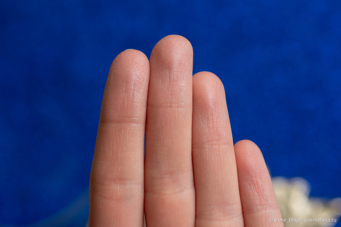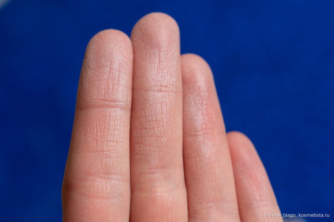 Самого оттенка на коже не вижу за счет тонкого и вуального покрытия — для меня этот продукт исключительно для создания сияющего и живого эффекта кожи.
