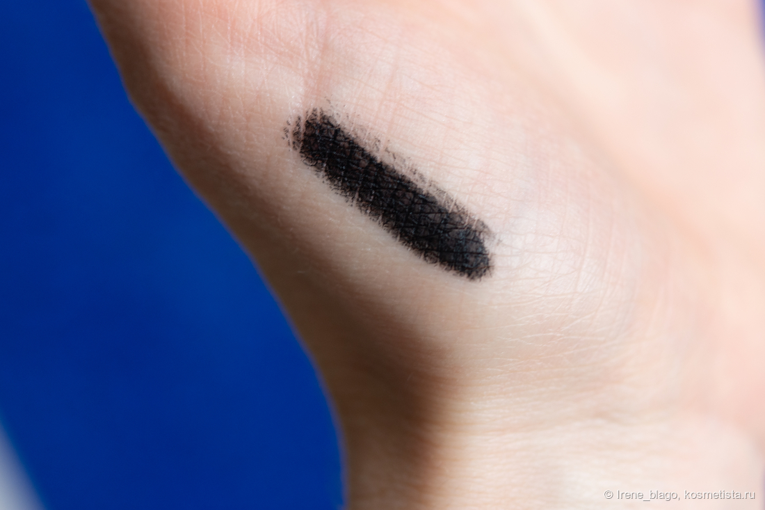 Карандаш полностью отвечает моим потребностям в текстуре, нанесении, носке и демакиже. Он обладает насыщенным и плотным черным оттенком, очень мягок и пластичен в нанесении с быстрой фиксацией и износостойкостью до демакияжа.