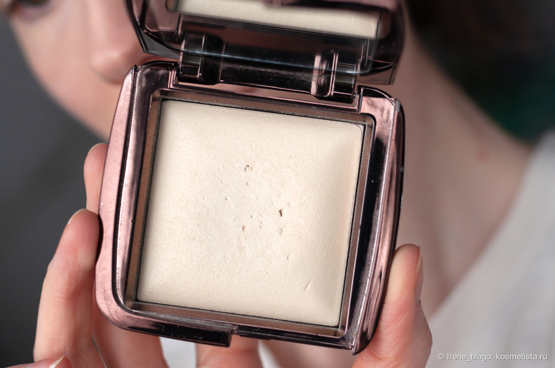 На фоне Метеоритов я вспомнила о существовании пресоованной пудры от Hourglass, купленной пару лет назад, и так полноценно ею не пользовавшись. Покупка этой пудры была связана с тем, чтобы разгадать тот магический эффект, который делает эта пудра с кожей — блюря ее, выглаживая, создавая естественную подсветку.