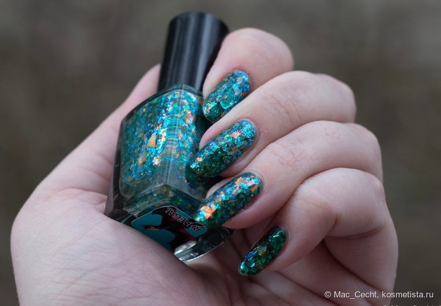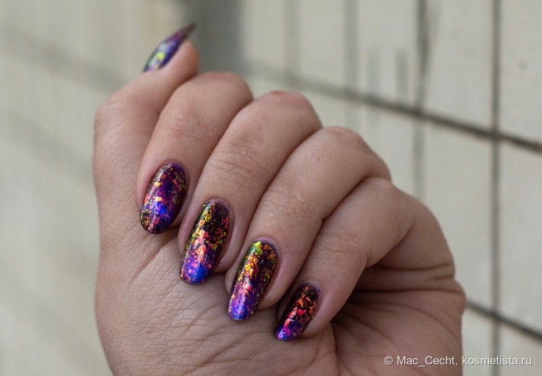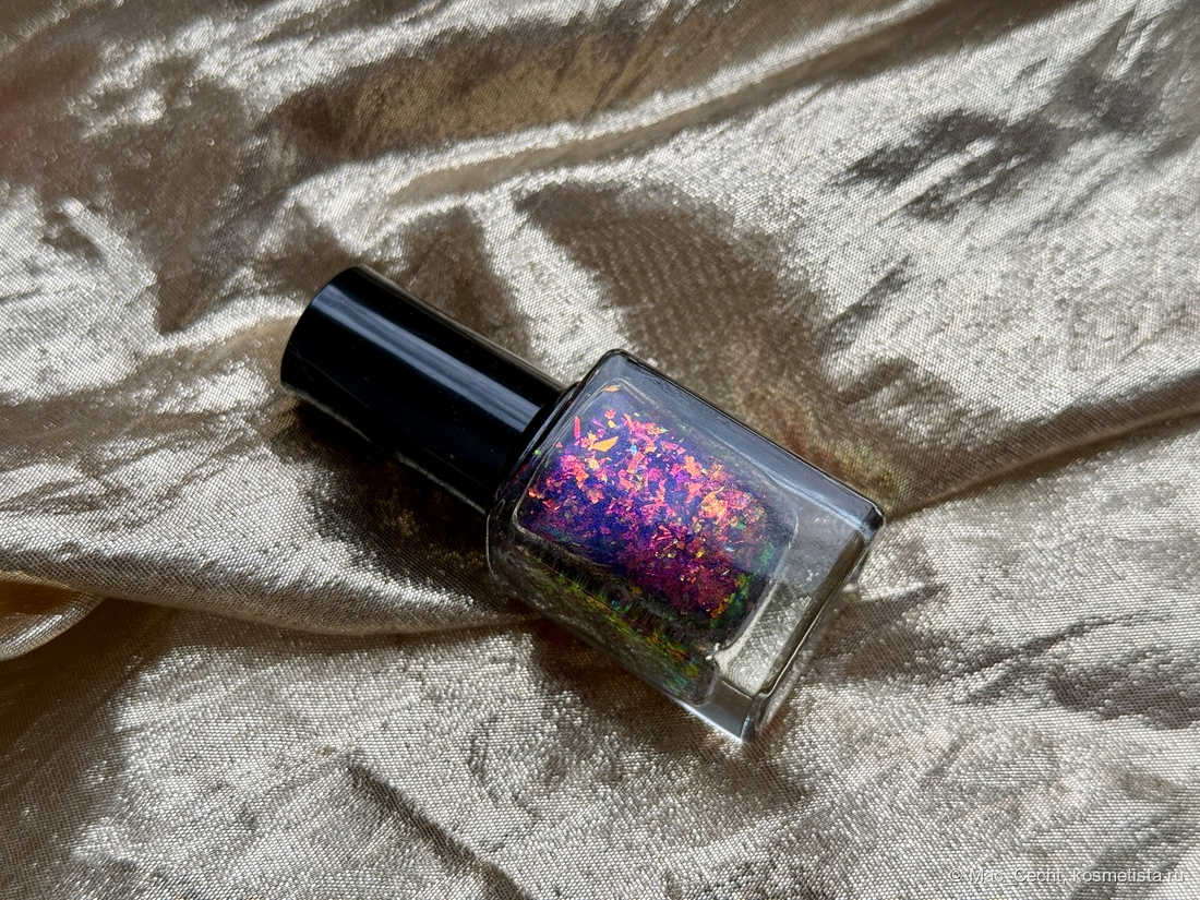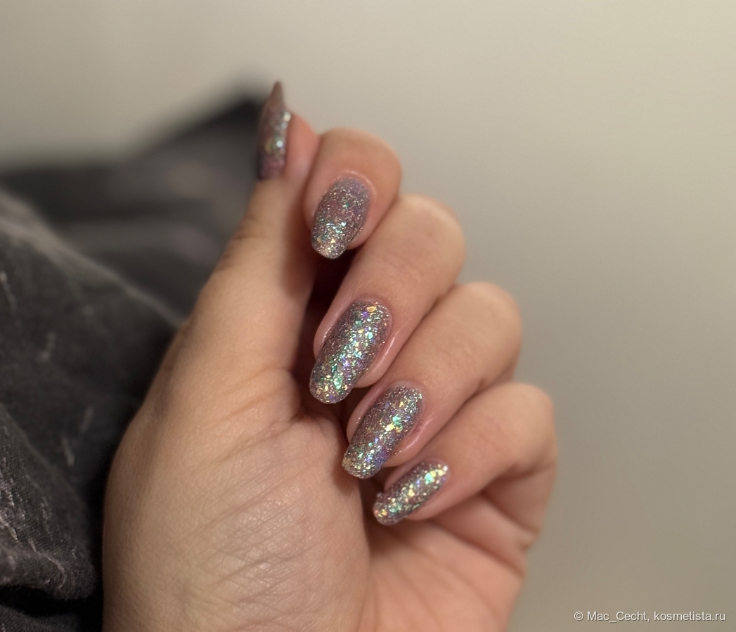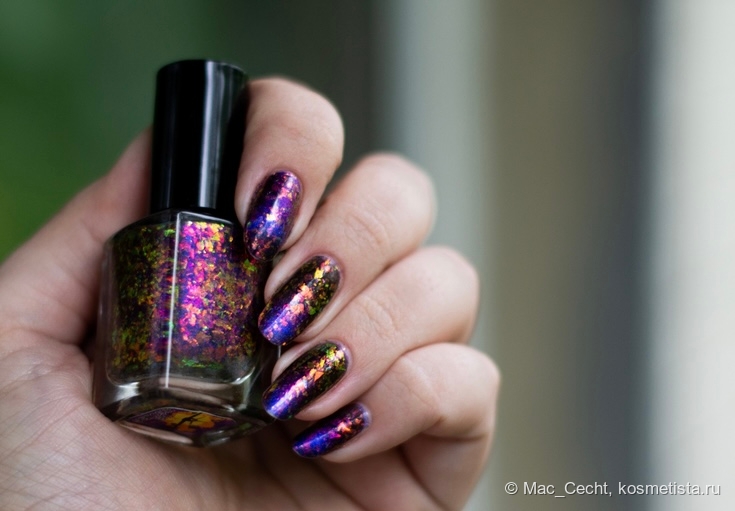 Это что-то нереальное. Этому лаку нужен свет, желательно, солнечный, тогда он будет максимально эффектный и красивый. Вот эта золотая начинка становится такой яркой, как нарисованной...