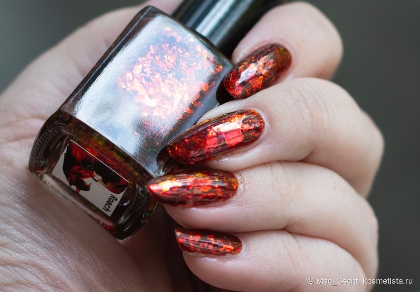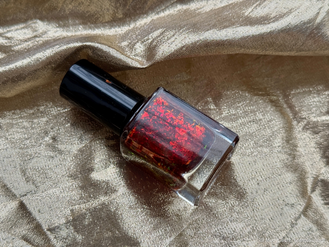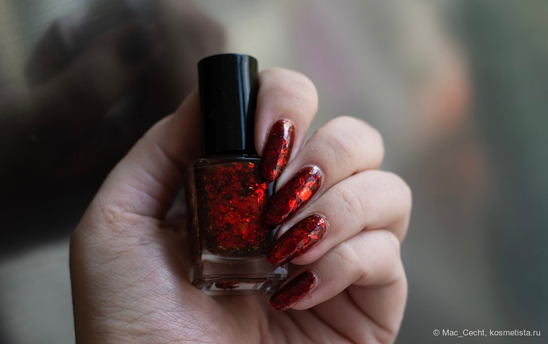 Этот лак я хотела давно, и в этом году был ресток с ним. Шикарнейшее красно-бордовое (иногда с рыжинкой) желе и красная же слюда в нем.