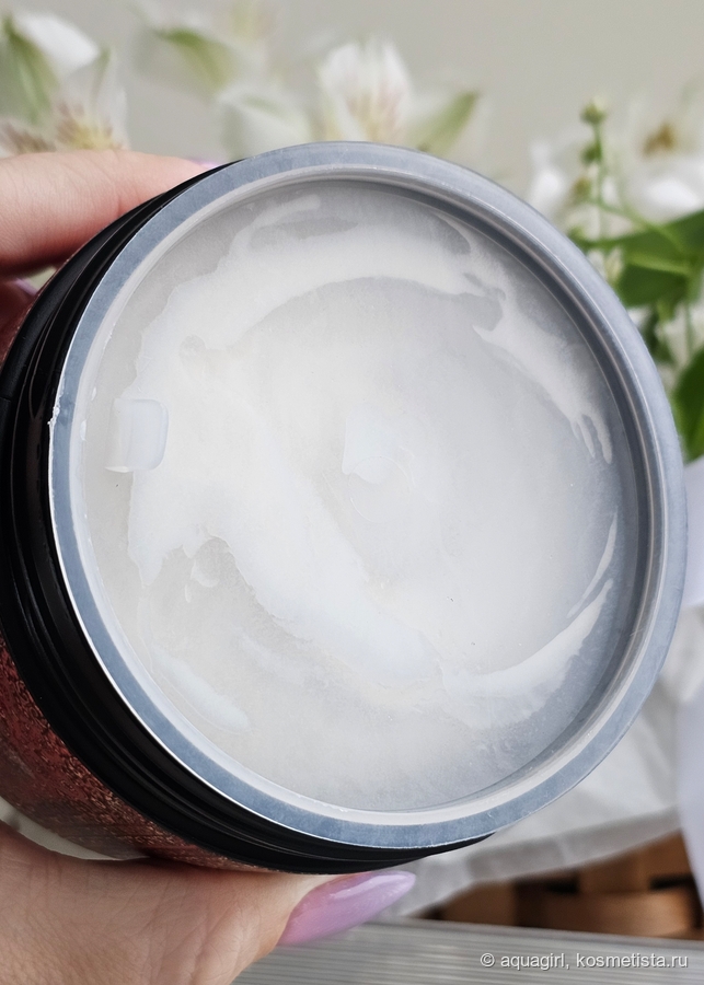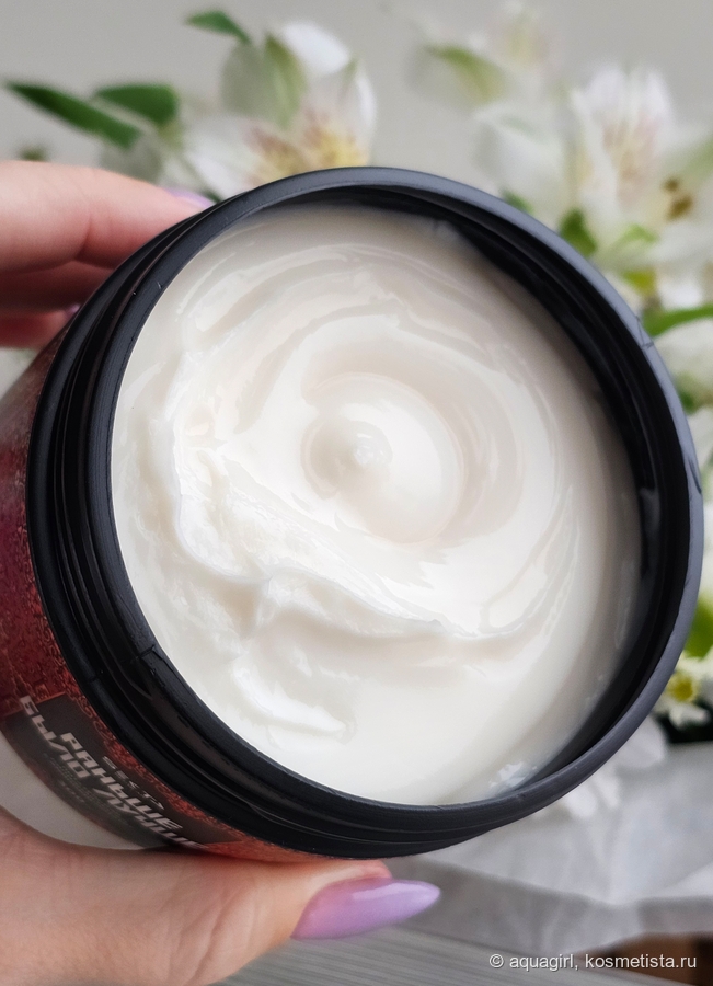 Не могу назвать её тающей. Липиды в составе дают о себе знать. Сразу можно сделать вывод, что от такой маски легко получить перепитанные волосы.