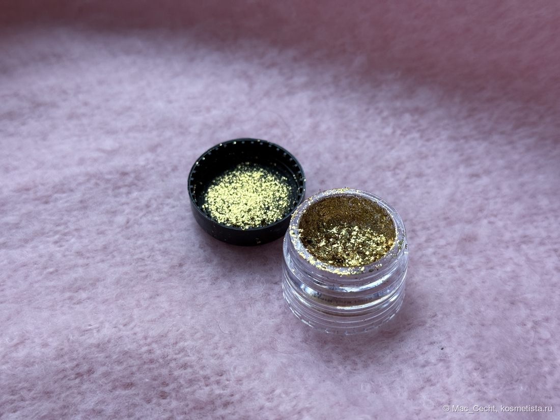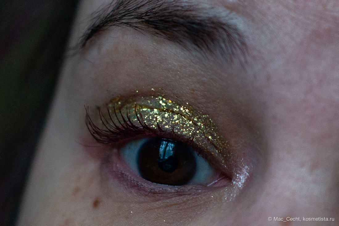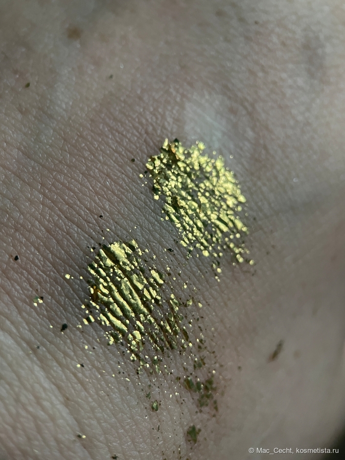 Золотее и слюдянее я еще не видела. Это реально яркие слюдяные хлопья. Люблю эти тени очень, частенько использую и думаю, не пора ли обзаводиться дублем...