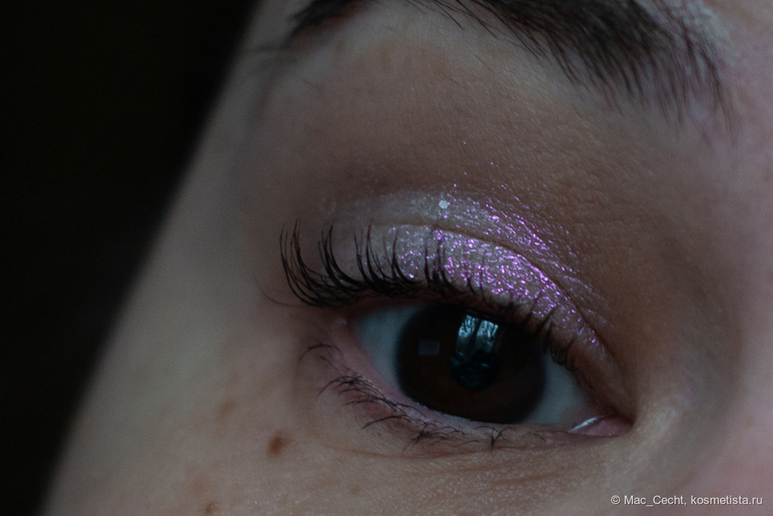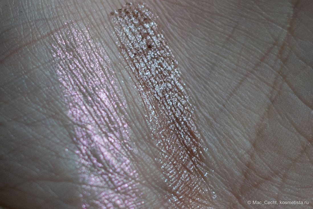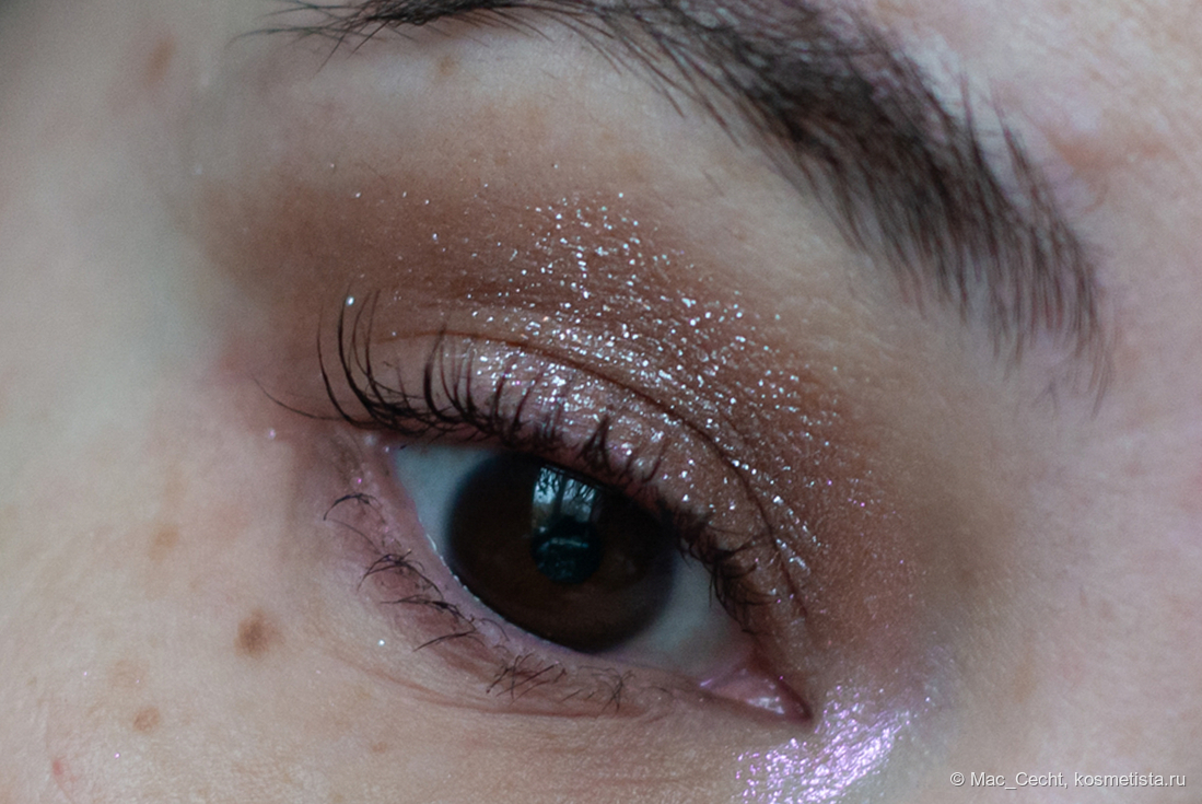 И коричневый с серебристыми блестками. Это вообще отличник для соло-макияжа. А как он переливается при искусственном свете, ммм...