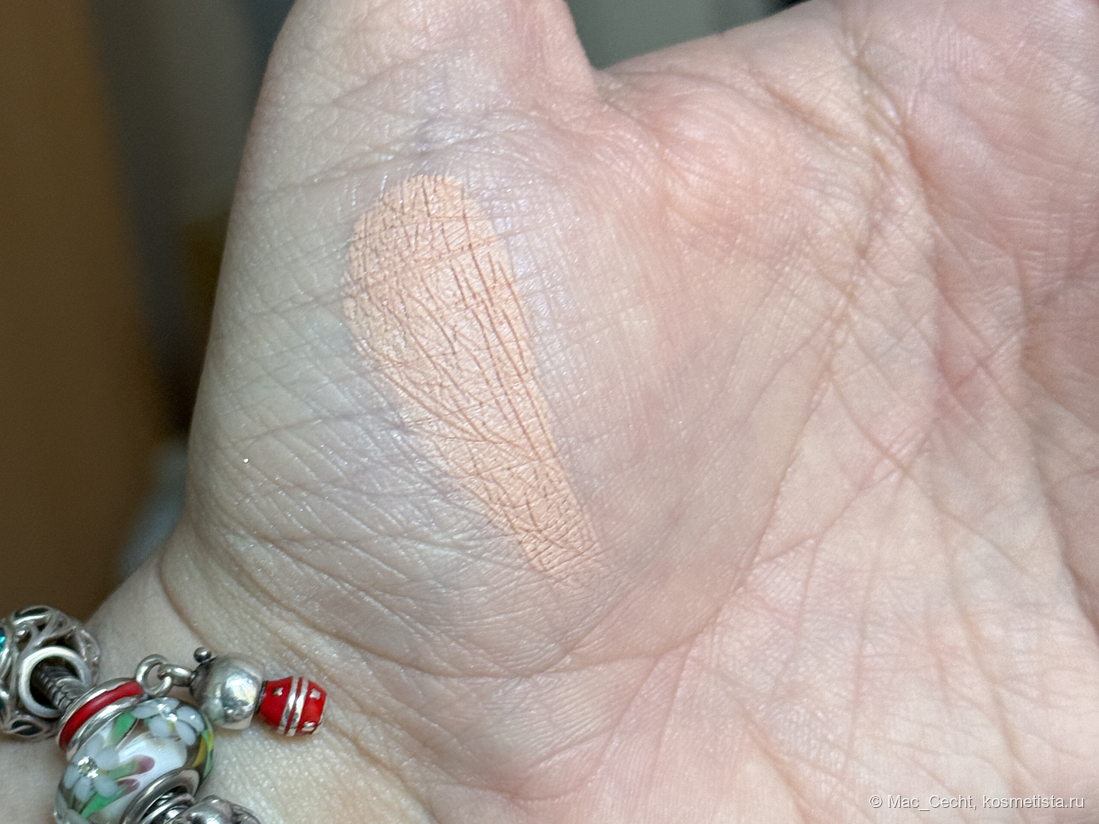 Я давно перестала пользоваться тоном, да и всем тонирующим тоже, но последние полгода, если я чем-то пользуюсь, то только им. Это классический такой персиковый цвет, который хорошо замазывает синяки под глазами.