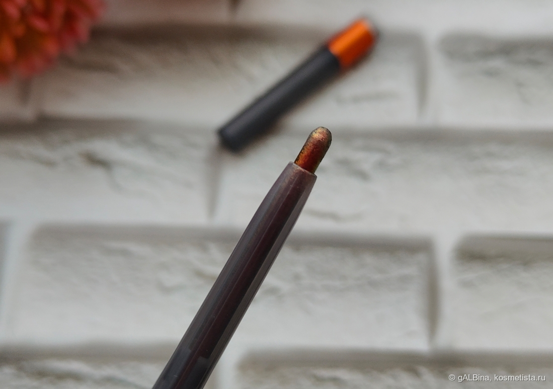 Ещё одна хотелка. Я вообще долго ходила вокруг этого карандаша. Сначала думала, что не надо, дуохромность какая-то не особо явная, но чем больше появлялось обзоров, тем сильнее они провоцировали меня на покупку, и вот пришёл момент когда я поняла, что надо. Мне нравится такой дизайн карандаша: простой тёмно-серый пластиковый корпус с яркой окантовкой в тон оттенка. Это самый обычный автоматический карандаш, выкручивается всё легко без каких-либо проблем.
