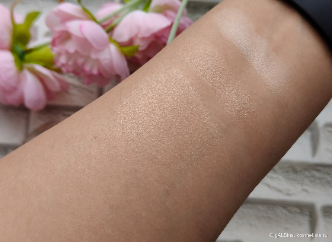 Оттенок розовато-коричневый, больше розовый на мне. Текстура очень комфортная, хоть она и пудровая.