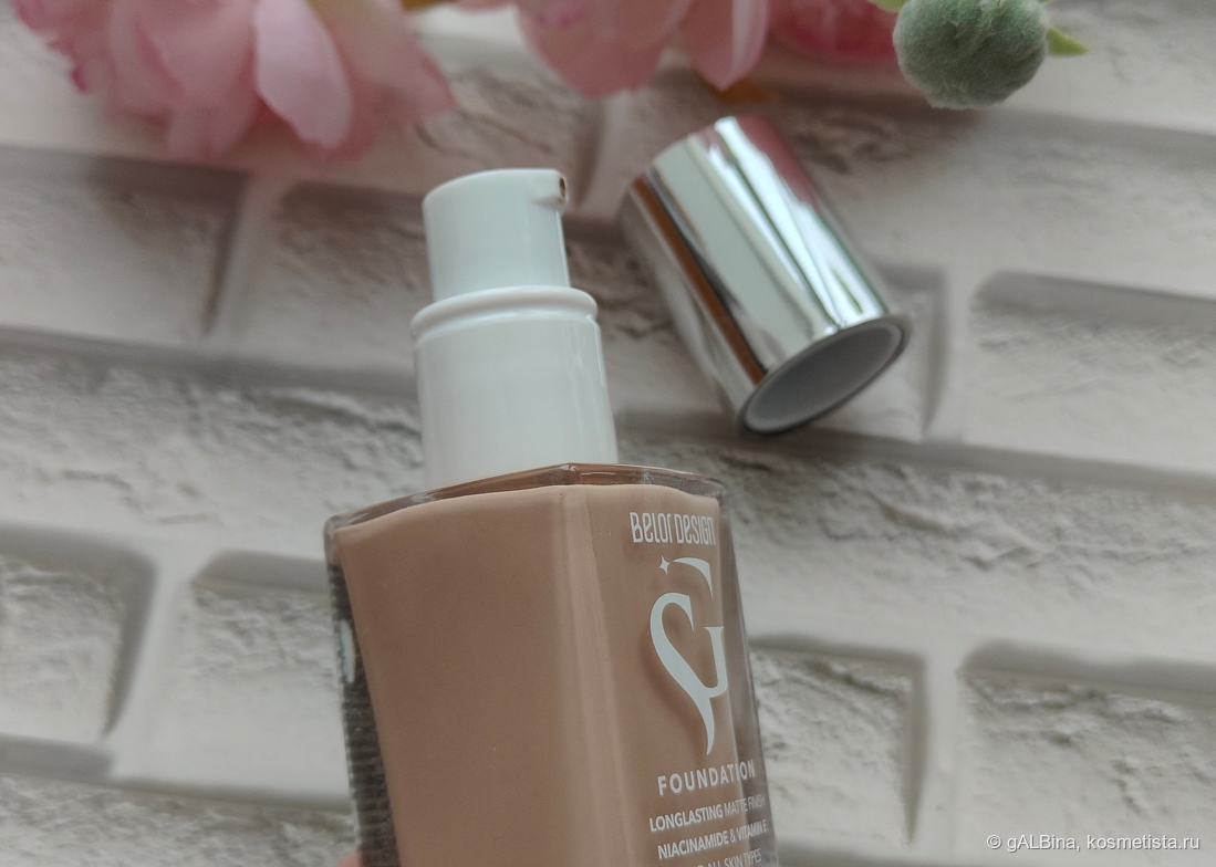 Финиш у тонального средства матовый, и сухой коже я не уверена, что прямо подойдёт. Я наношу уход пожирнее и в целом как мне кажется сидит вполне неплохо. При этом не сильно подчёркивает высыпания и следы постакне. В поры не заваливается, с крыльев носа не слезает. На коже сидит уверенно как минимум 4 часа. Потом местами покрытие становится менее плотным, но в целом выглядит всё прилично. Помимо всего прочего в составе указаны ниацинамид и витамин Е, в теории как будто бы есть ещё и ухаживающие свойства.