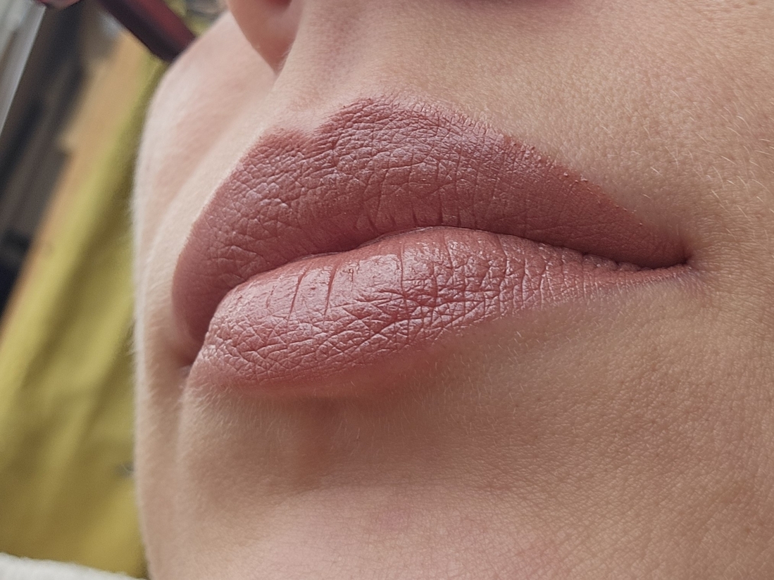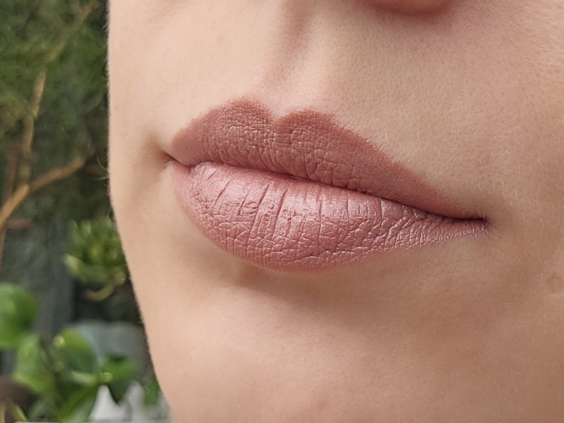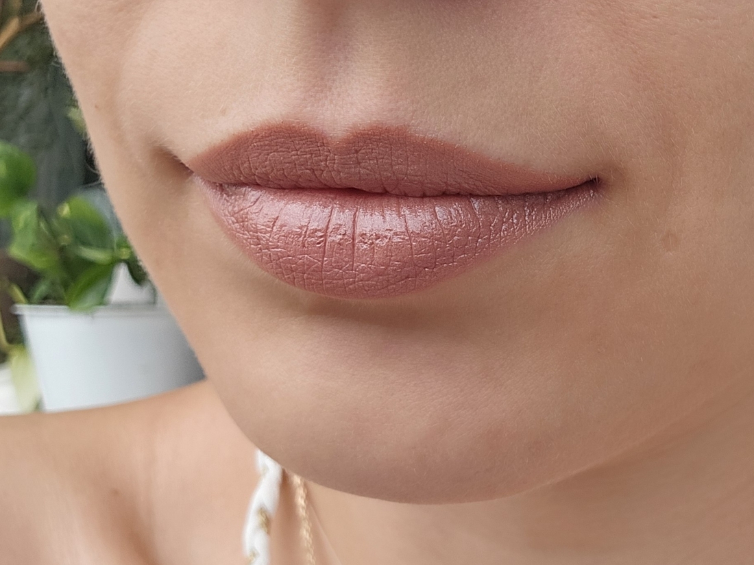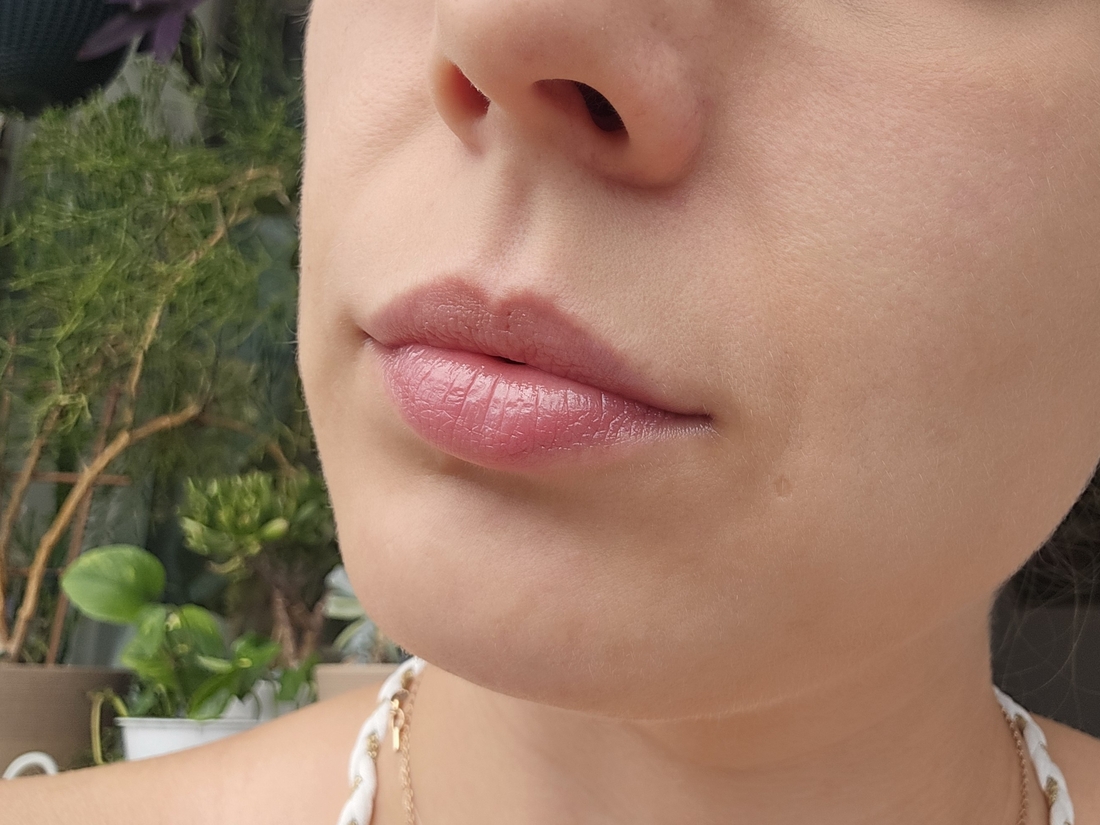 Кремовая текстура дает равномерное покрытие, не сушит губы, долго держится. Не растекается, не забивается в складки. Может немного подчеркивать шелушения если они есть.