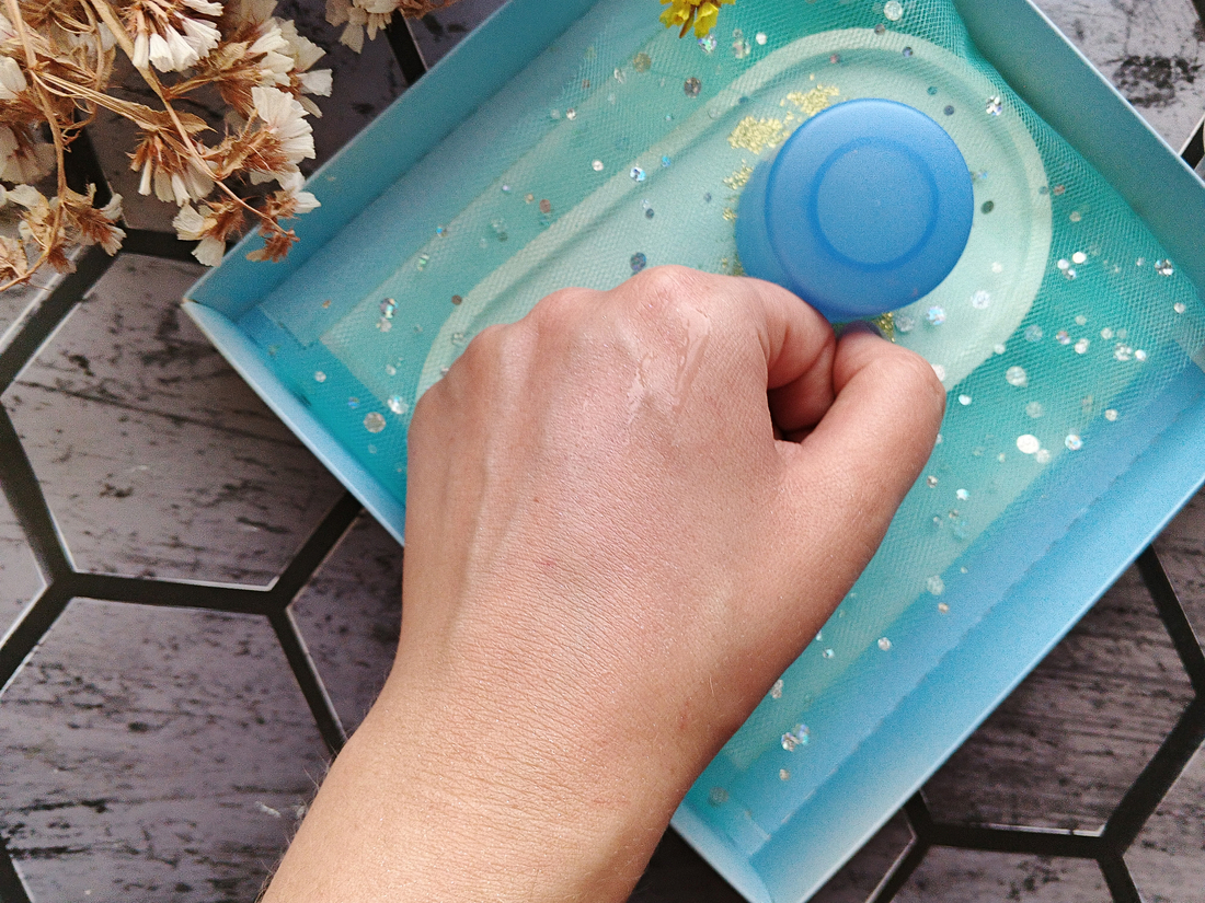 Текстура — флюид бледно-жёлтого цвета. Тактильно приятный — не липкий, но чуточку маслянистый. Легко распределяется по коже, не выбеливая её.