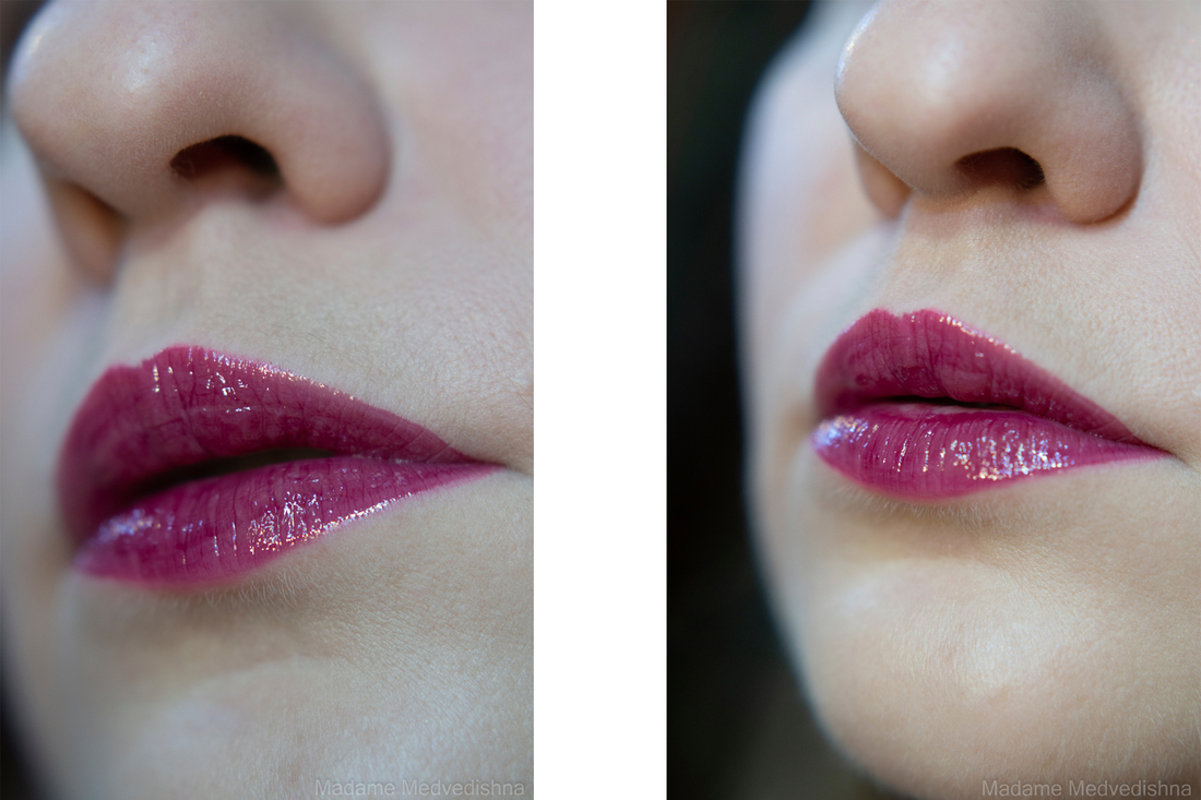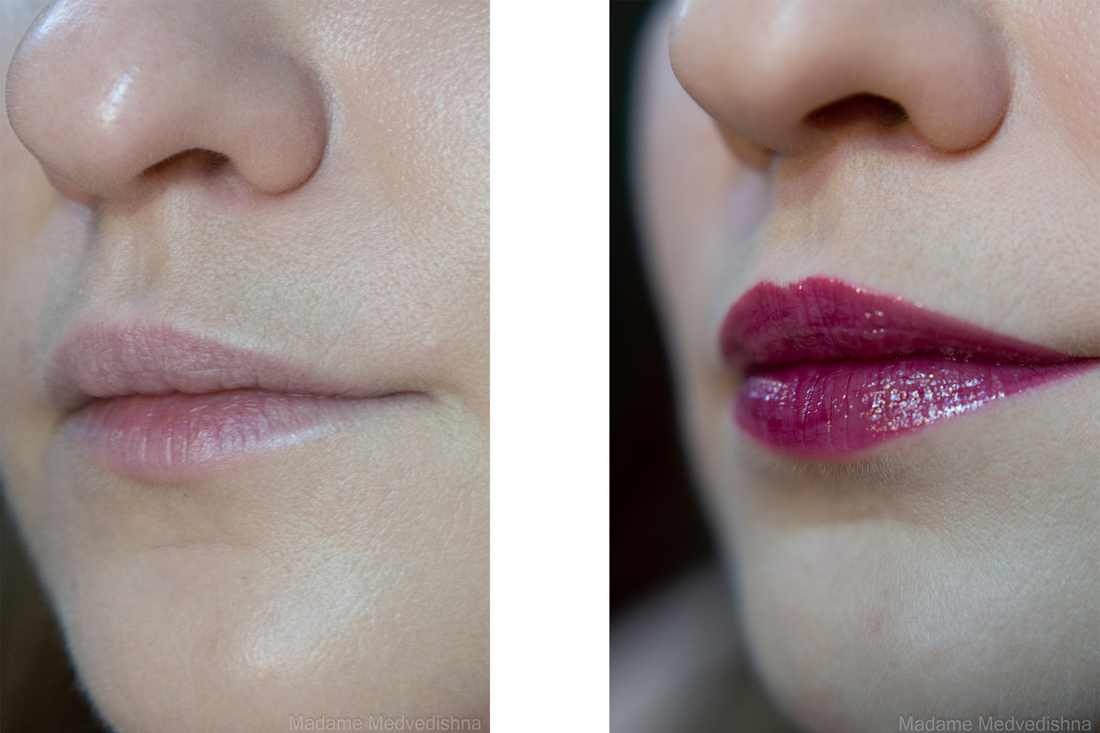 Текстура: я бы назвала это густым лёгким маслом. На губах комфортен, не как после поедания жирного блинчика. По нанесению, текстуре, ощущениям, цвету очень похож на масло Lip Comfort Oil от Clarins.