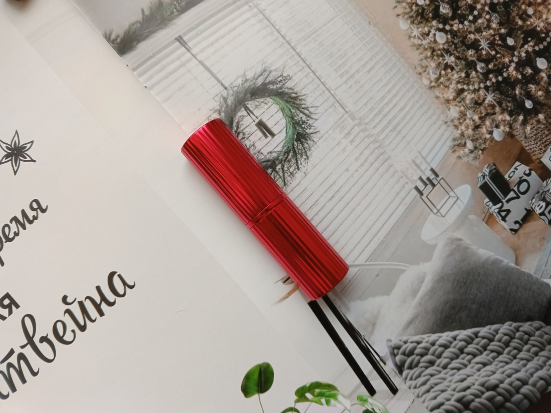 Еще одная яркая помада и снова двусторонняя. С одной стороны матовый карандаш, с другой кремовая мягкая помада. Они слегка отличаются по оттенку, карандаш более темный и красный, а помада более светлая и с уклоном в фиолетовый. В итоге получаются сочные губы, которые каждый раз привлекают внимание. Я полюбила за последние годы яркие губы, и с радостью ношу такие оттенки на повседневной основе. А эта помада еще и приятно лежит на губах, мягко-пластичная, не застывает и не западает в рельеф. А еще ее легко поправить, если что-то пошло не так.