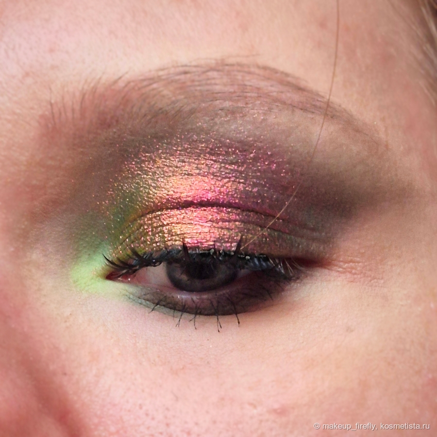 Все сияшки я наносила пальцем, но и плоской кистью они хорошо переносятся. По стойкости в общем ничего нового, бетонно он не схватывается, но и явных пробелов к концу дня на веке я не обнаружила.