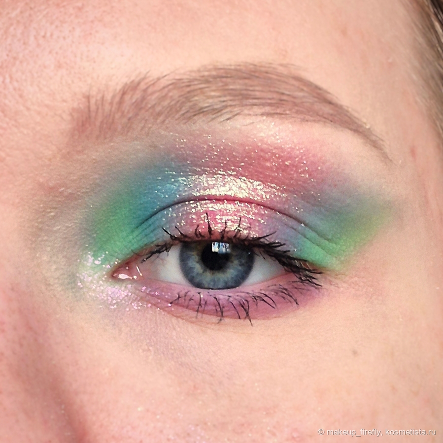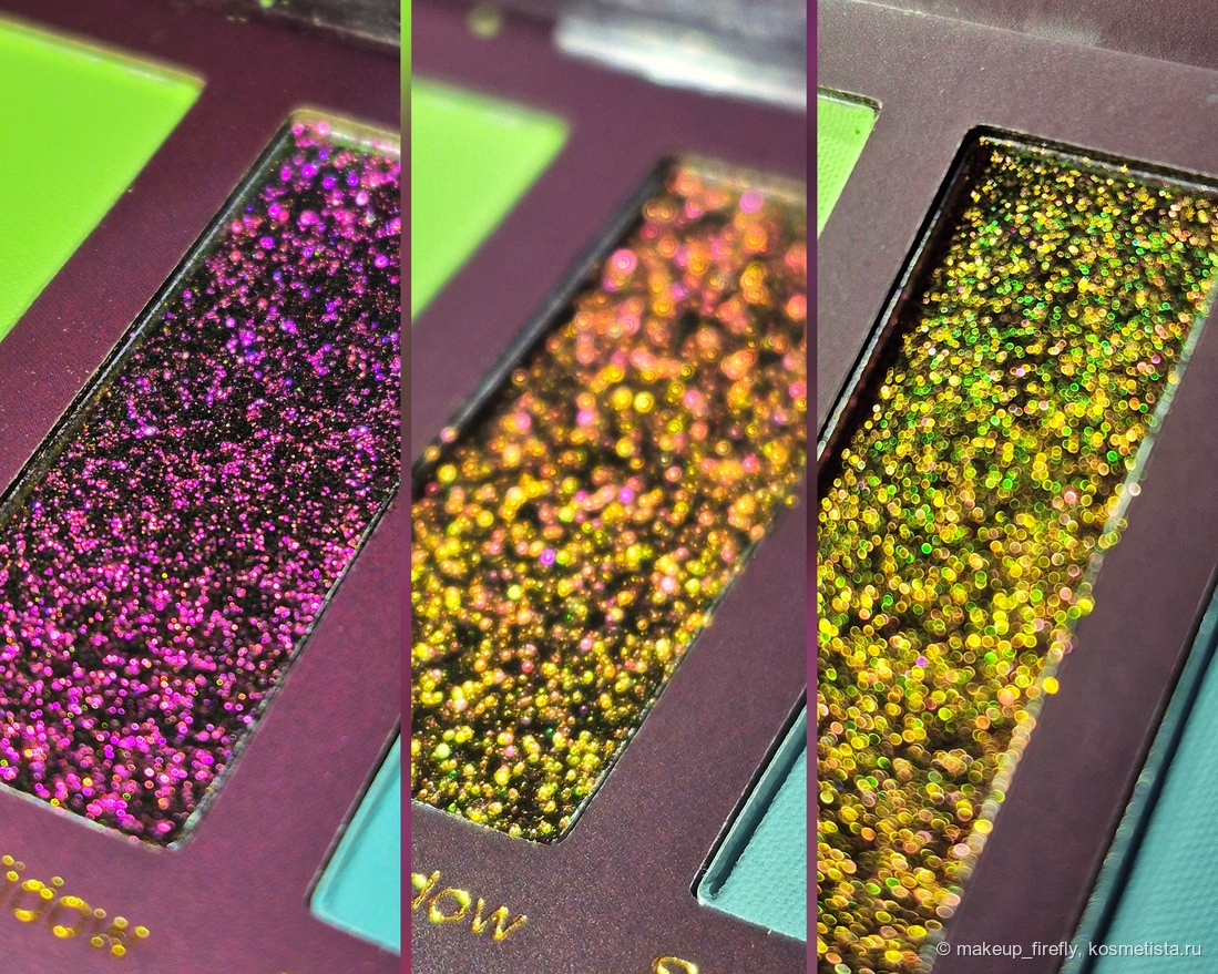 Колористика у палетки одновременно интересная и сложная, цвета припыленные. Поближе посмотрим на спарклы.
