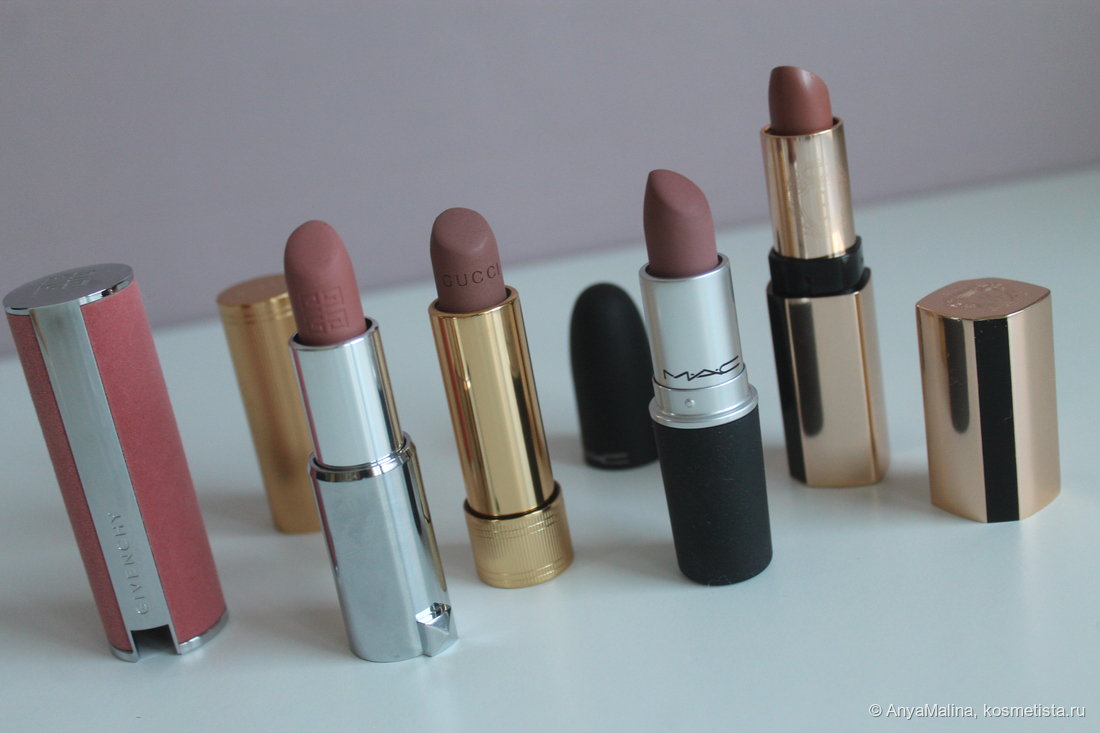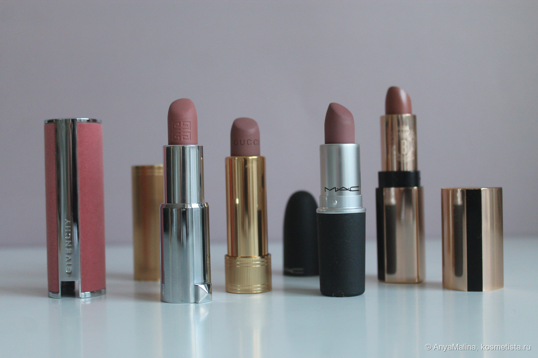 Очень понравилась Mac и матовая Гуччи — люблю пудровые/матовые/вельветовые помады. По цвету больше всего нравится Гуччи.