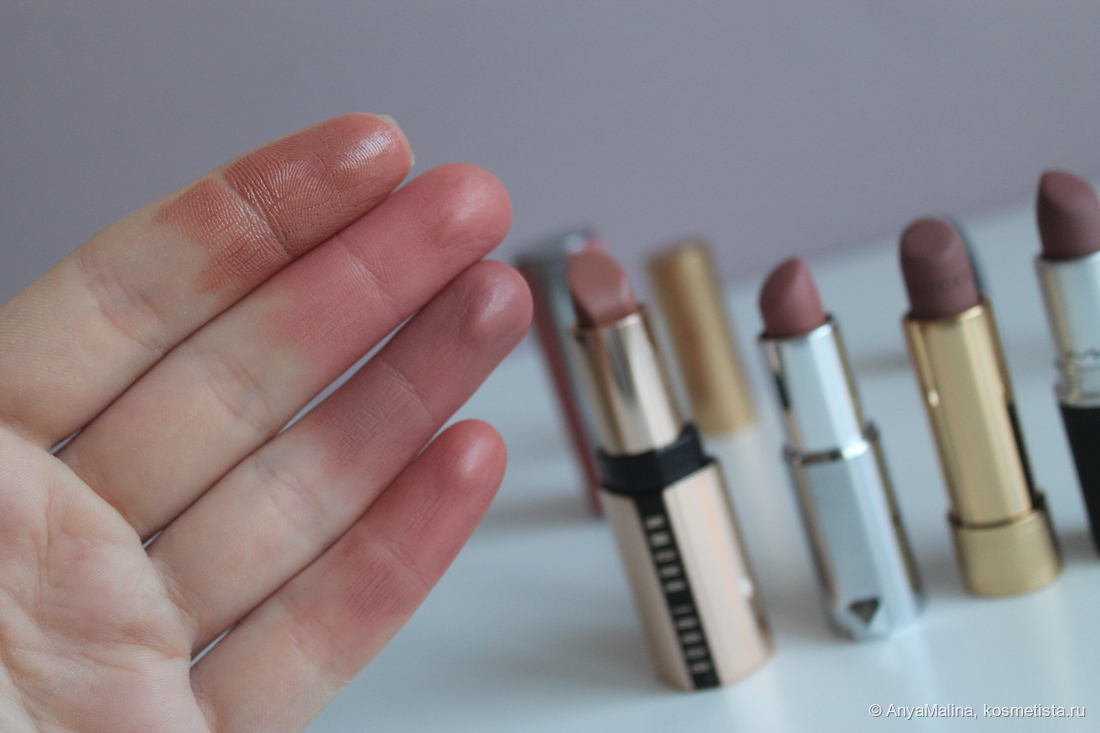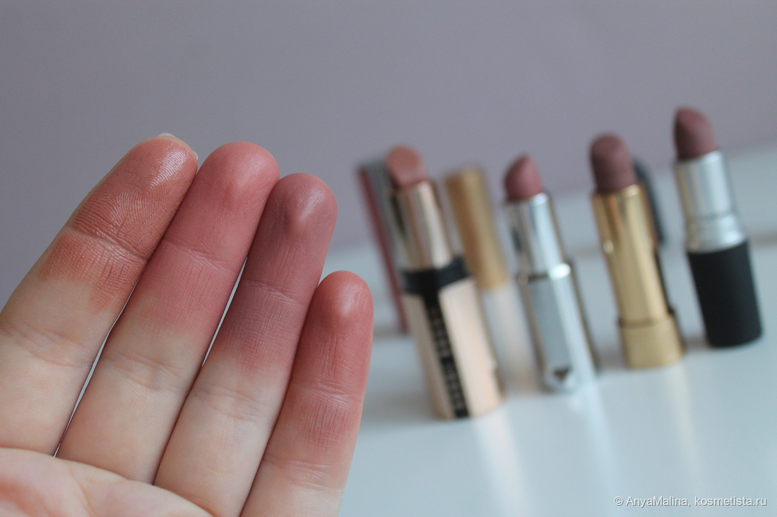 То есть нюдовые помады — база, с которой начинала Браун. Только не обольщайтесь насчёт оттенка, розовым деревом тут и не пахнет, оно и рядом не стояло, даже Буратино из него на одной улице с этой помадой никто не строгал. Смотрите сами на губах (моё теплая внешность и не такую рыжину выдержит, остальным трижды думать), брала без затеста: