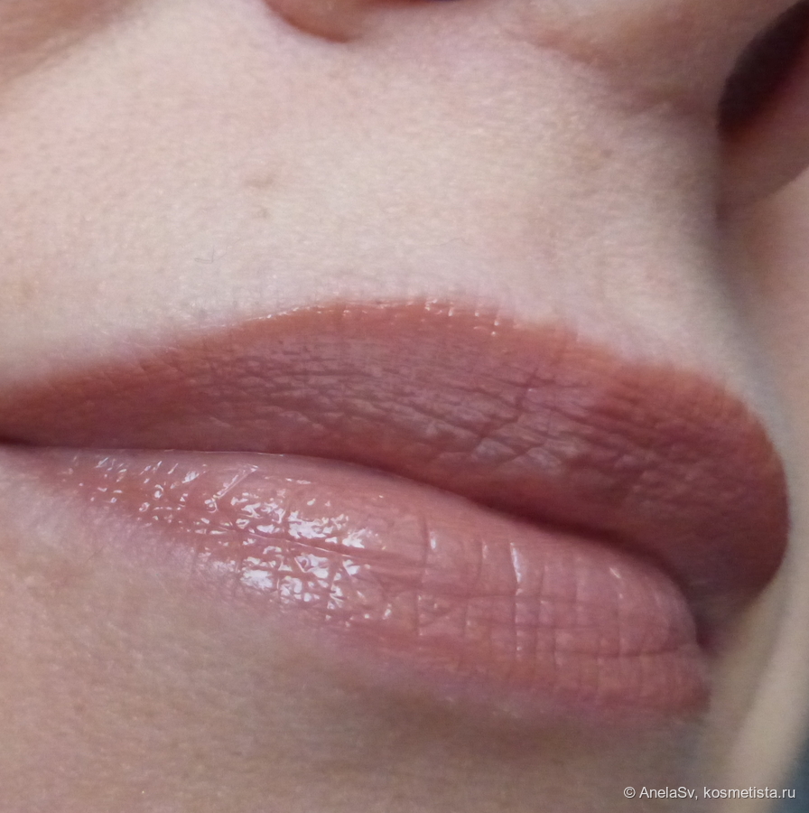 В носке средство оказалось плотным и липким. Спустя время может собираться в складках и образовывать светлую линию на стыке губ — честно говоря, неприятный сюрприз для продукта из люкс-сегмента. При этом губы он не пересушивает. Держится примерно четыре часа, сходит без проблем.