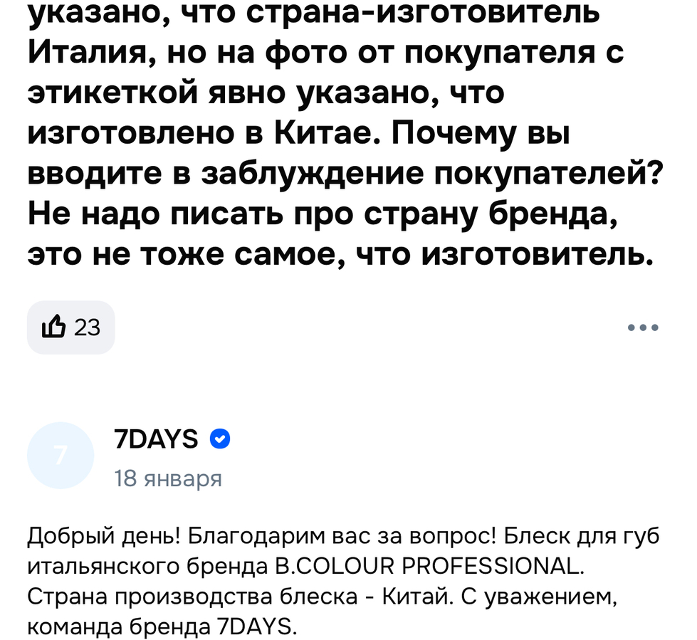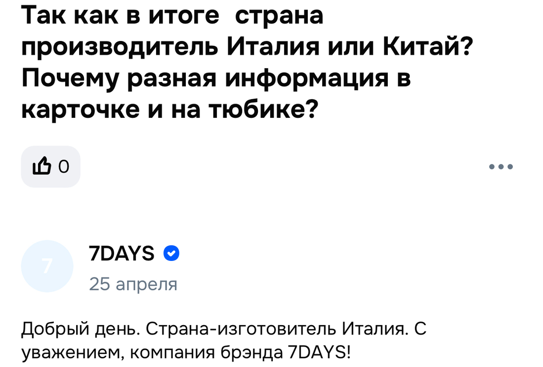 Не скажу что я такое прям одобряю, но раз своё придумывать долго и дорого, то бюджетному бренду такое прощают. Правда как бюджетному, на старте за такую тубу просили вообще что-то около тысячи российских рублей, мне досталась за 700, тогда как еще два раза по столько и можно финансово поддержать Хейли Бибер. Буду думать, что ценник обусловлен иностранным производством и щедрым объемом в 12 мл. Этикетку я выкинула, а потом сама не могла разобраться, где все-таки делают это чудо, описание в ИМ и ответы производителя ясности не добавили: