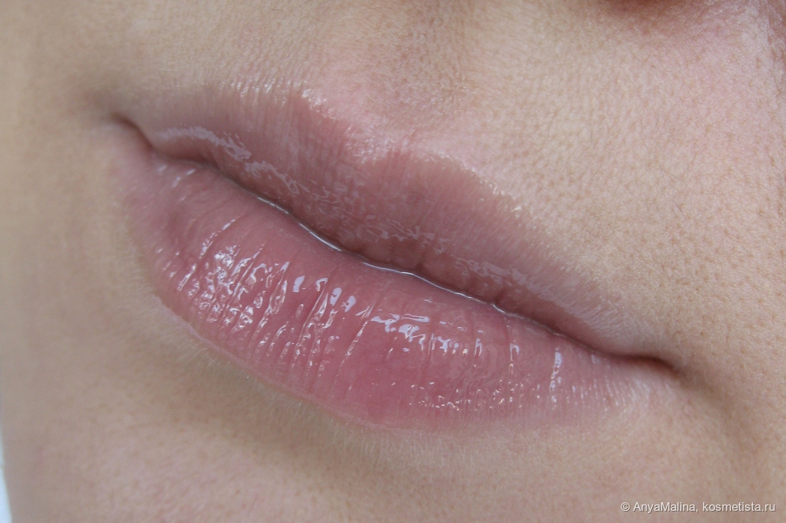 В целом блеск не липкий, не смотря на достойный глянец и заполнение рельефа на губах. В складки не западает, за контур не мигрирует, в белую полоску не скатывается. В течение дня постепенно впитывается, тогда становится чуть более густым, и надо обновлять слой. За счет специфичного аппликатора это можно сделать весьма гигиенично. Отдушка едва заметна только при нанесении, и, вопреки ожиданиям от надписи Plump, ни ментола, ни перца, ни прочих спецэффектов в составе нет. Плампинг сугубо визуальный от глянца и увлажения, а оно тут прям на уровне, на морозы отлично.
