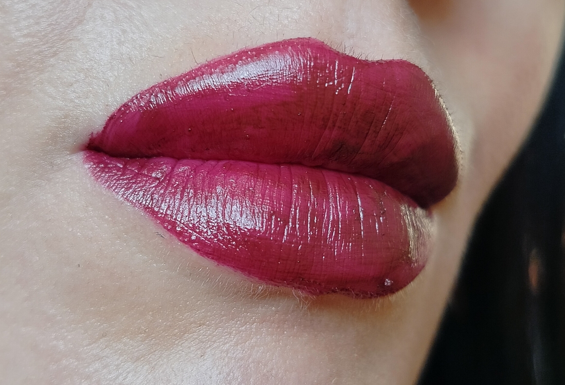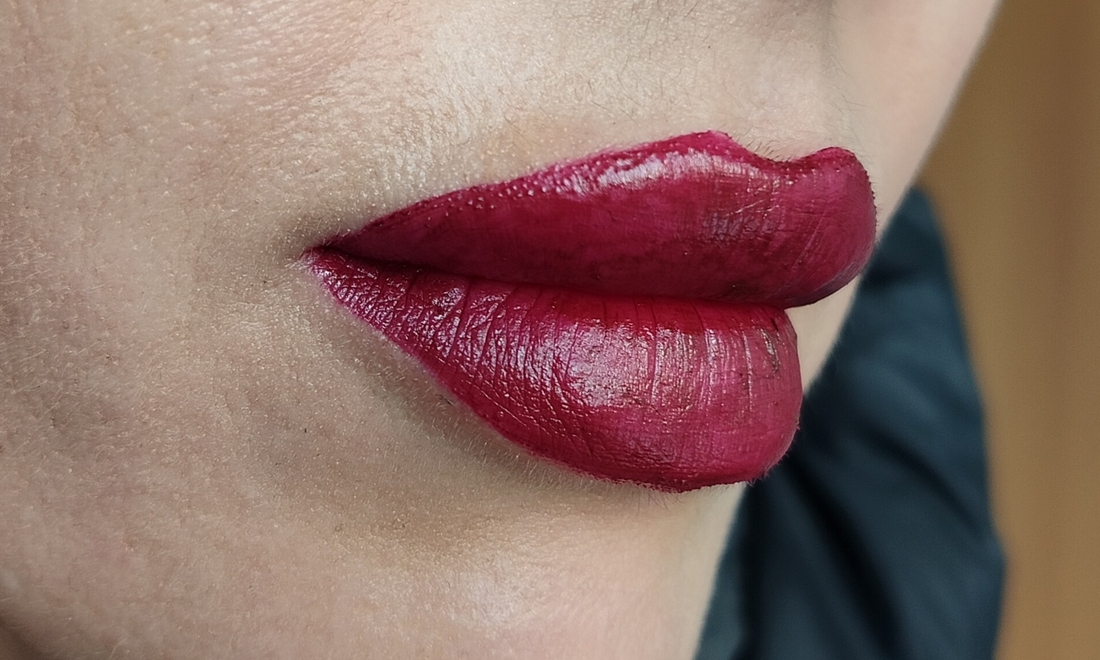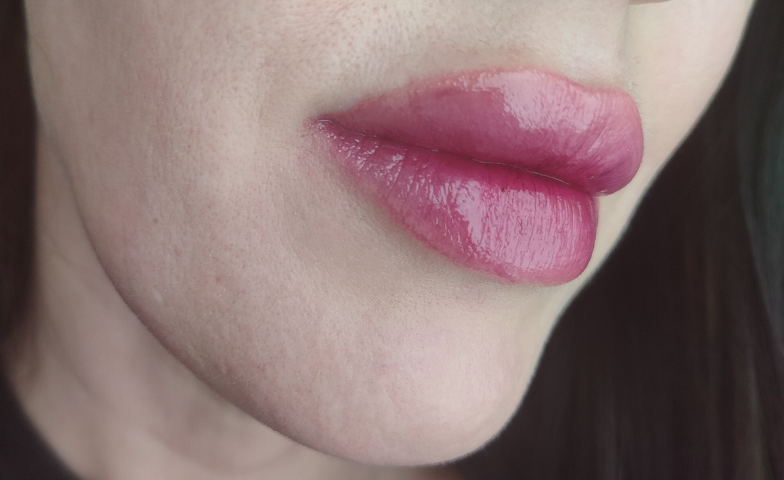 Не зря производитель назвал помаду тинтом — тинтует она ого-го, даже после смывания мицелляркой и гидрофильным маслом остается заметный стейн.