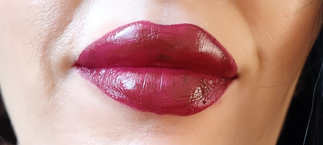И здесь я полностью соглашусь — помада действительно невесомая и на губах после нанесения не ощущается. Очень легко распределяется по губам благодаря замечательному аппликатору — не растекается, за контур не убегает.