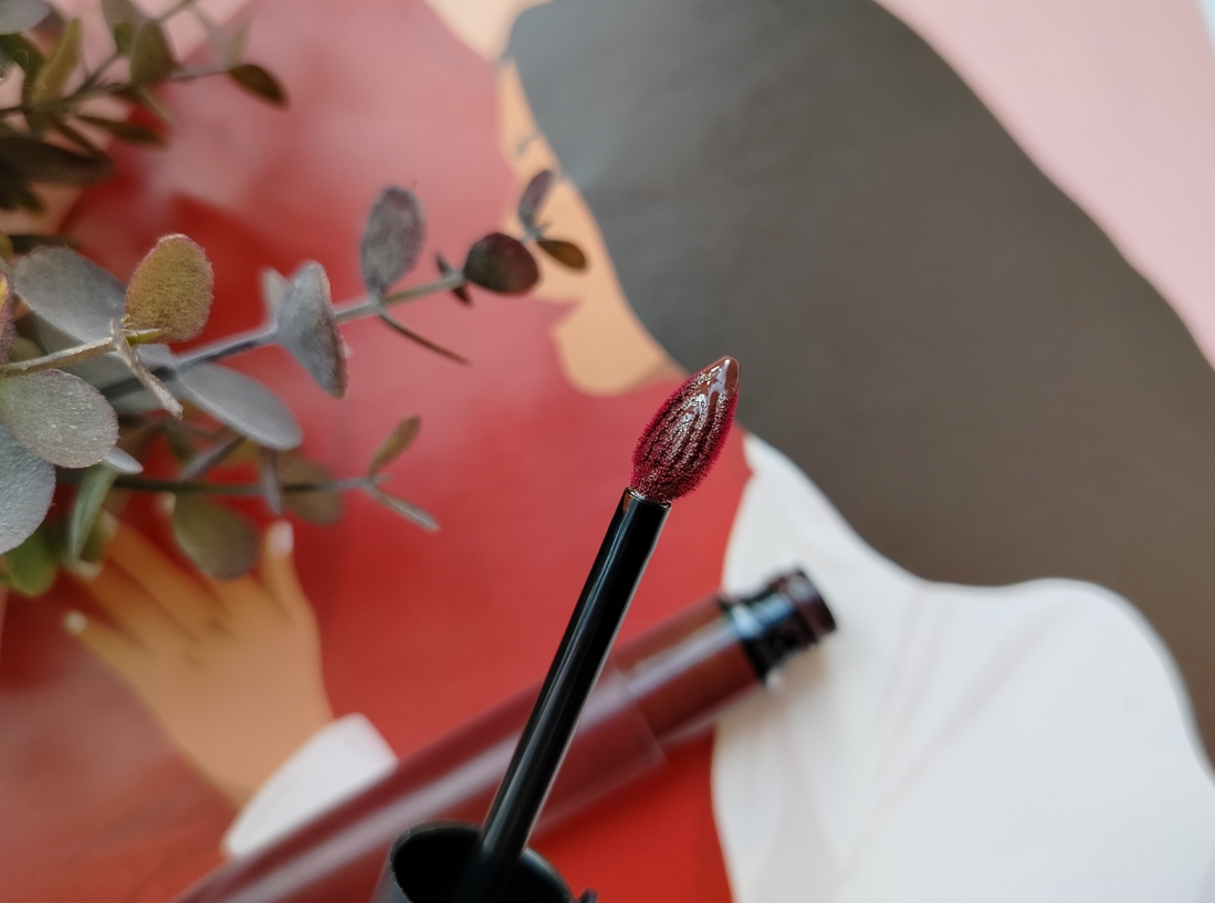 Упаковка минималистичная, но очень функциональная и стильная — матовая заостренная колба и черный колпачок с золотистой вставкой бренда. Через полупрозрачный корпус можно судить о цвете, но он не индентичен тому, что получаем на губах.