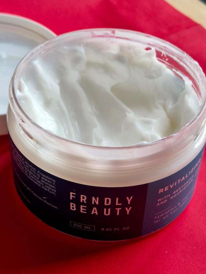 С длиной, увы, пришлось попрощаться. Был момент, когда хотелось пойти по пути Бритни Спирс и просто побрить голову, но, к счастью, порыв был подавлен. Остатки длины пришлось спасать всеми доступными способами и в тот момент в мои руки попала маска для волос Frndly Beauty Revitalazing hair mask.