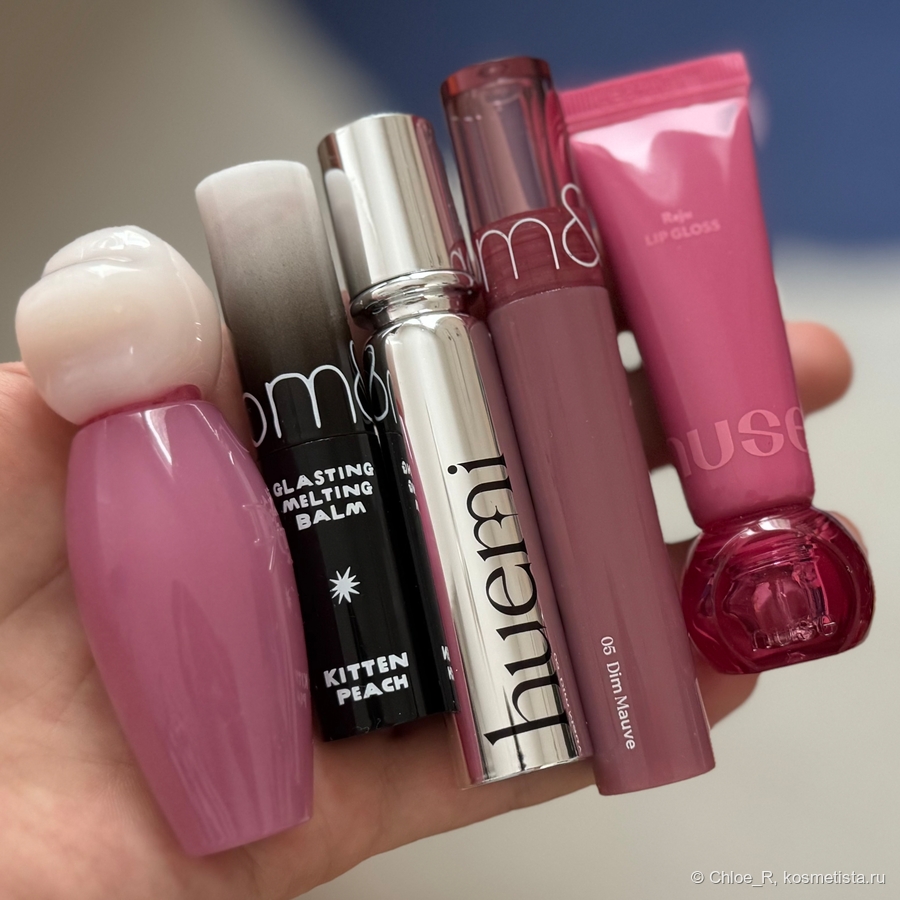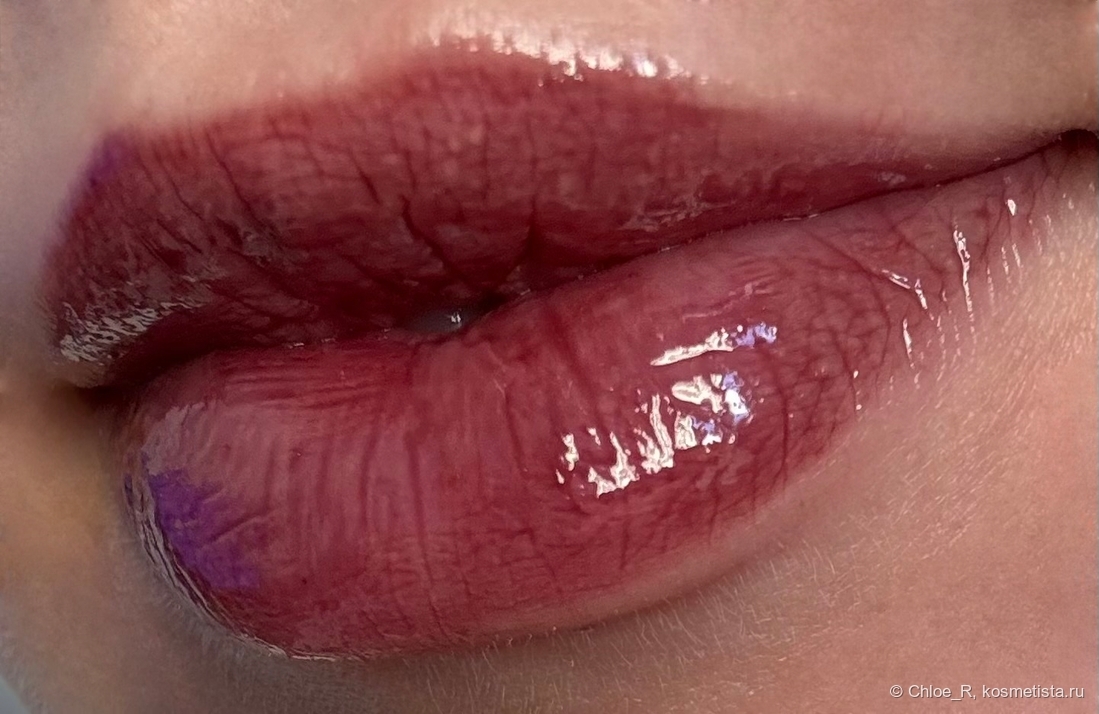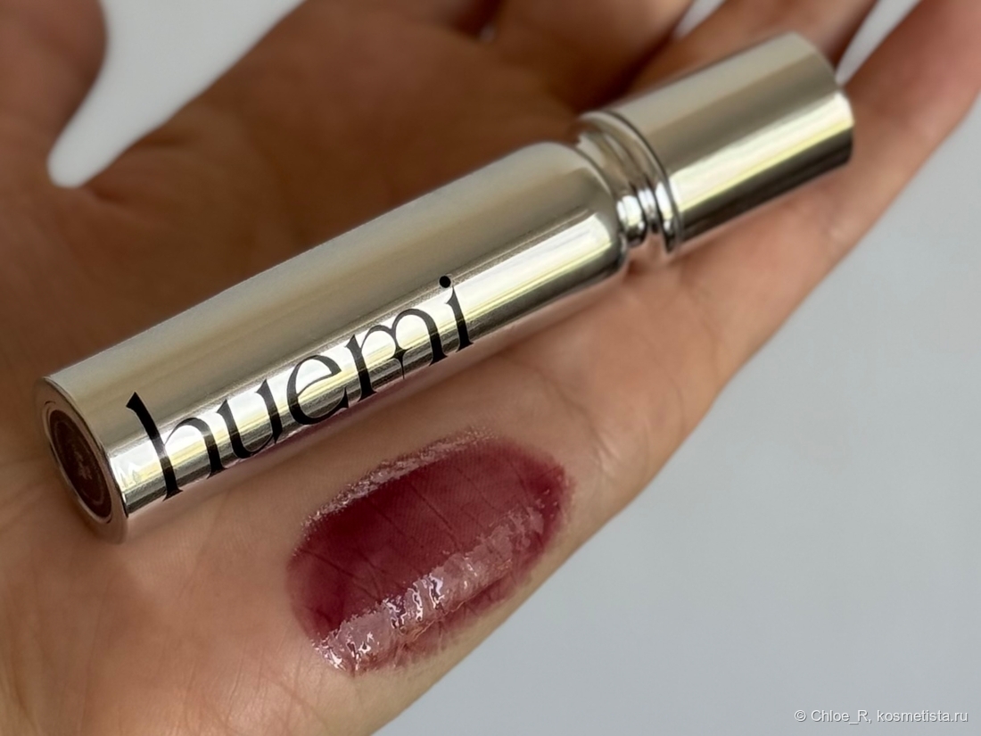 Ну и вишенка на торте — тающий блеск от бренда Huemi в красивом вампирском оттенке 03. Это тоже новинка 2025 года, которая влюбила в себя моментально.