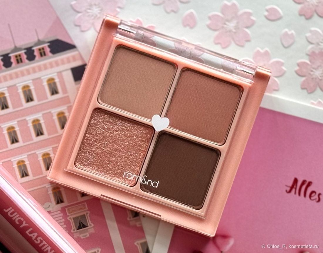 Я не очень активный пользователь теней, но очень понравилась эта палеточка от Rom&nd, она закрывает все мои базовые потребности в тенях) Хотя на днях у меня появилось аж 3 новые палетки