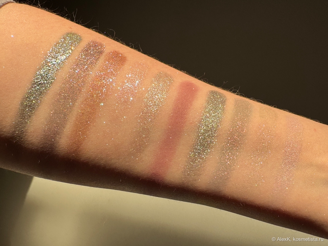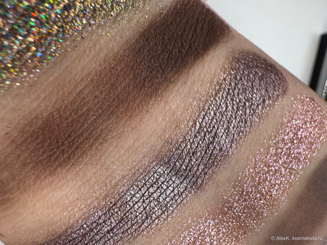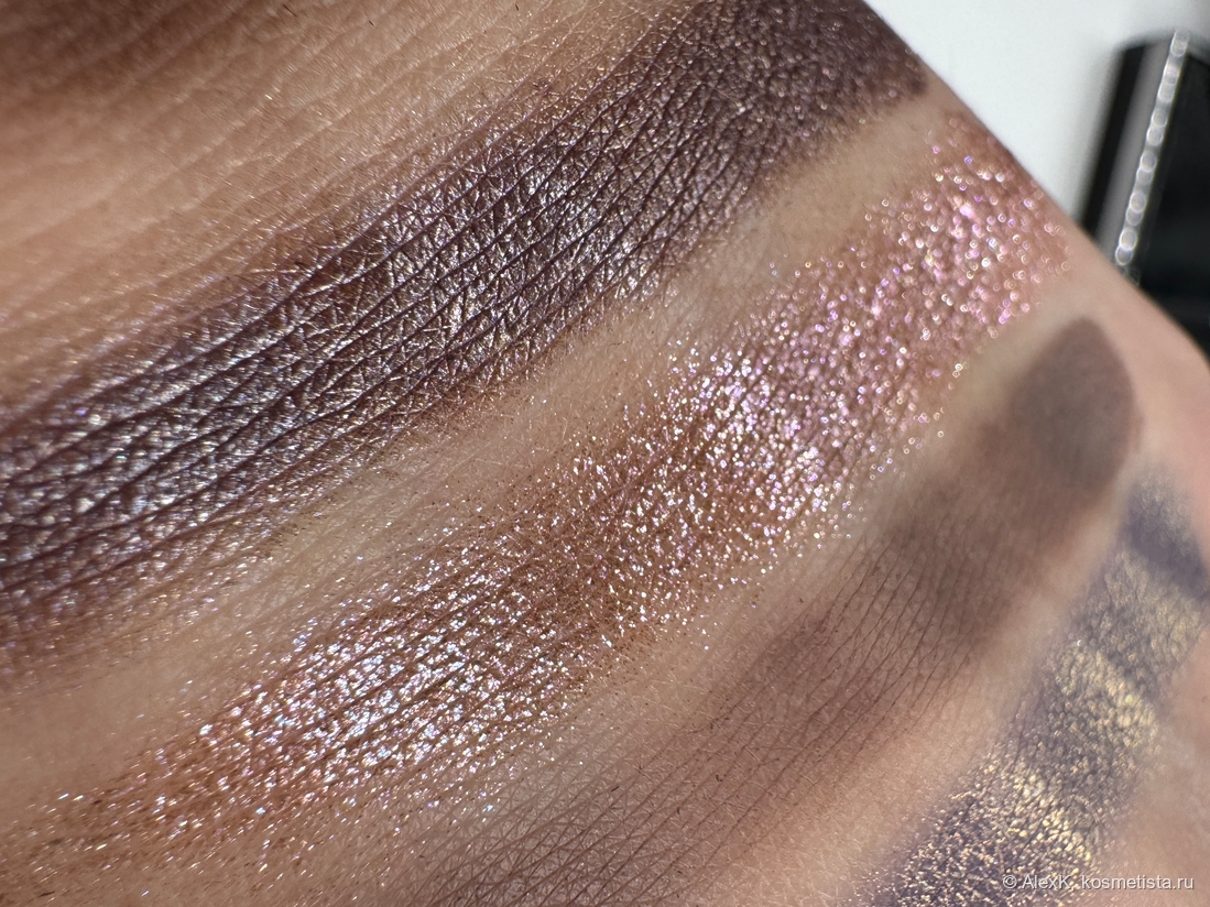 Который кусался — искры на песчанной дюне, освещенной закатным солнцем. Спаркл, терракотово-коричневый сатин с мультишиммером. Даже муж впечатлился. Говорит, вспыхивает при каждом моргании. «Очень необычно!» (цитата).