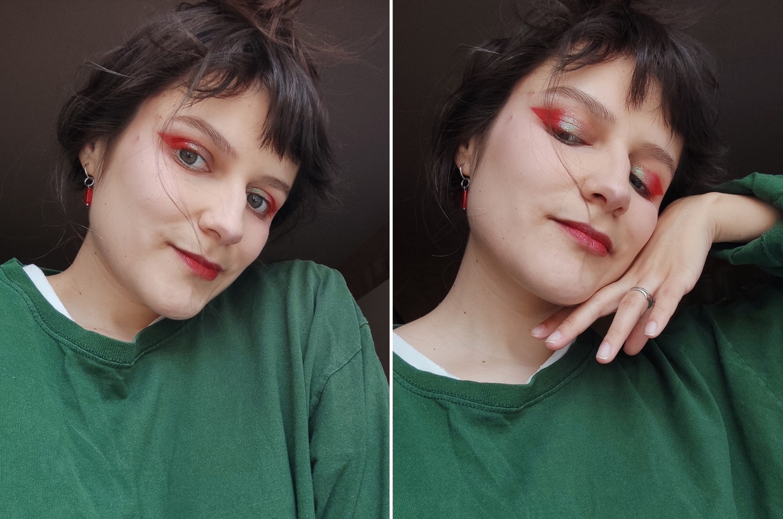Мой макияж сегодня — сигнал бедствия. Но такого красивого бедствия вы ещё не видели! Проверяю лайфхак из рилсов, который настойчиво напоминал о себе всю прошлую неделю. Знаете этот, где наляпал тени, стер все лишнее, и красота?