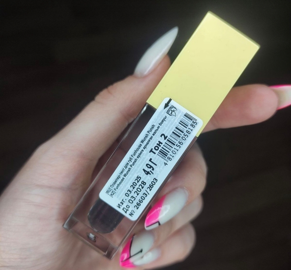 В принципе вся линейка funhouse выпущена плюс-минус в одном стиле, таком местами детском и «игрушечном». Мне некоторые продукты линейки чисто визуально кажутся отталкивающими, но против этого тинта ничего не имею. Прозрачный пластиковый корпус, разбеленно-жёлтые надписи и крышечка.