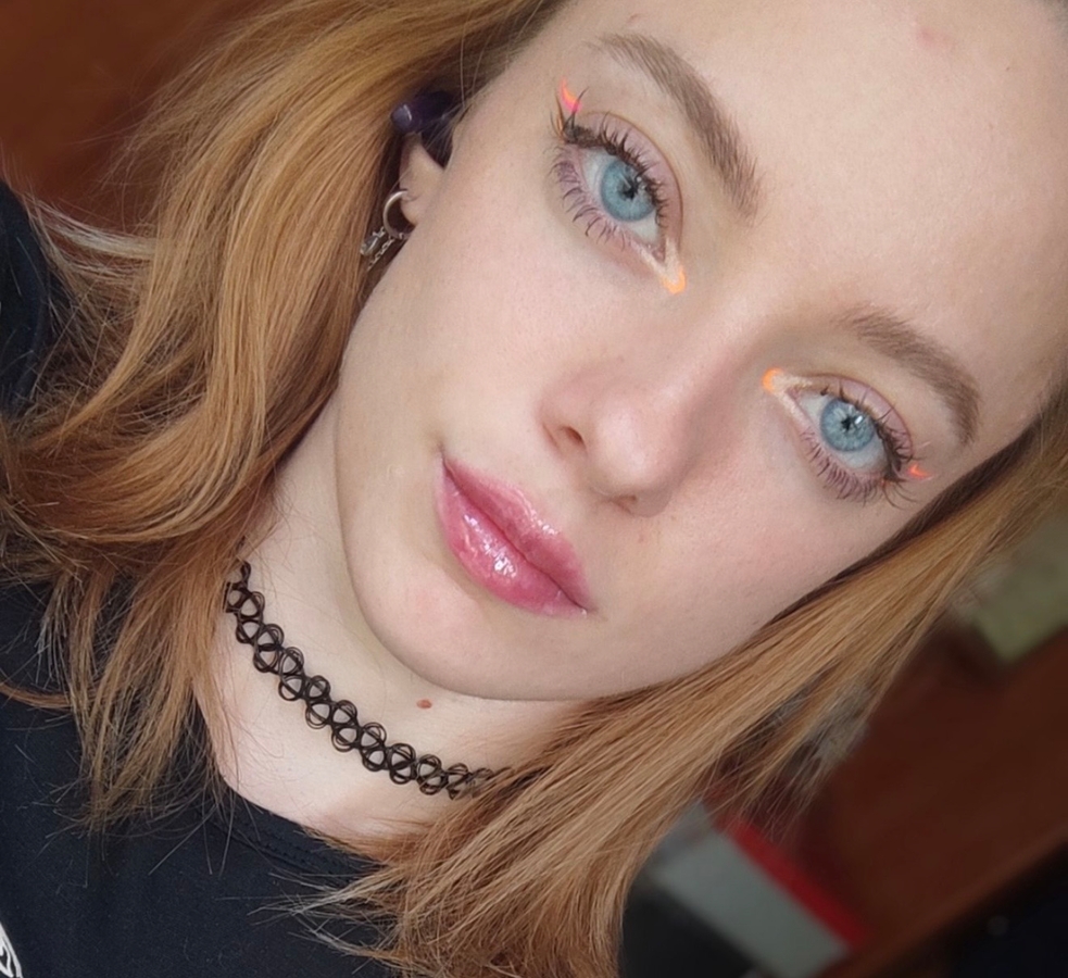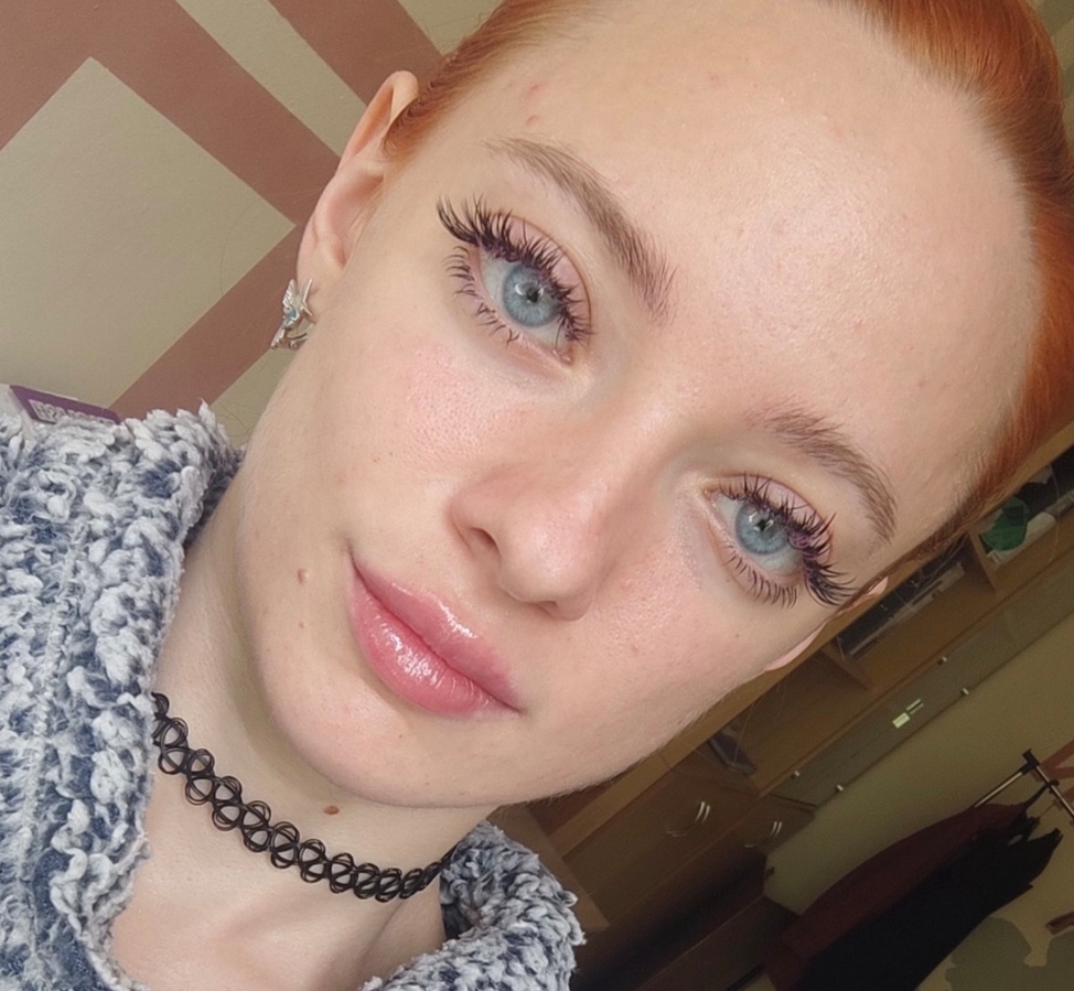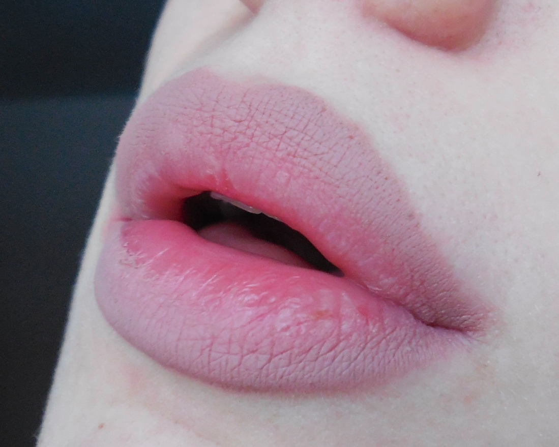 Почему так? Потому что, с одной стороны, сразу при нанесении он кажется землисто-серым. Но в то же время это тинт реагирующий на ph, что придаёт ему розовинку, которая очень удачно всё «уравновешивает» и делает оттенок скорее прохладным лиловым, никакой фуксии. Не так гранжево, как могло бы быть, но куда более универсально.