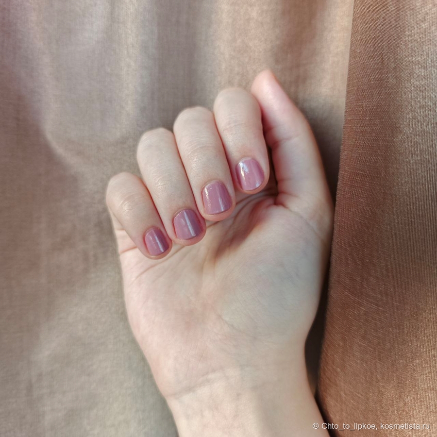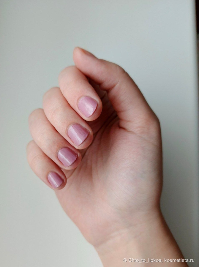 Цвет у лака роскошный. Холодная пыльная роза, которая не краснит кутикулу и смотрится комплиментарно с любым образом и в любой обстановке. Именно этот аргумент был решающим для покупки.