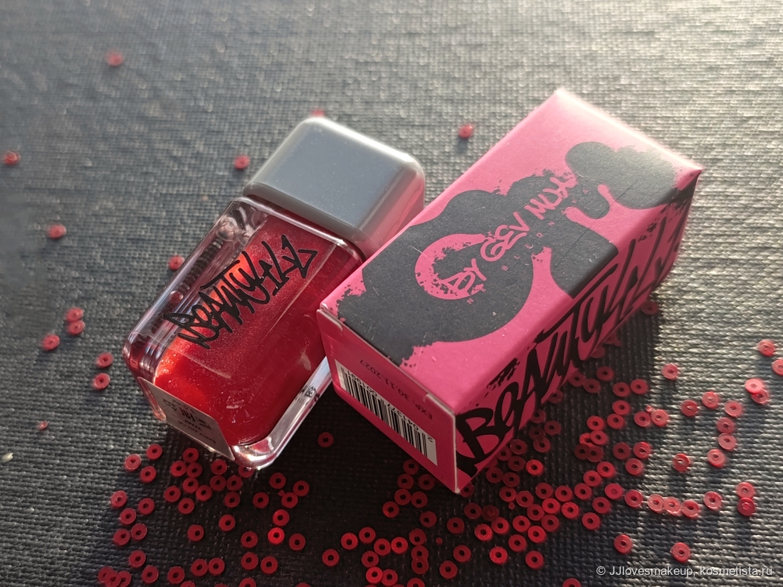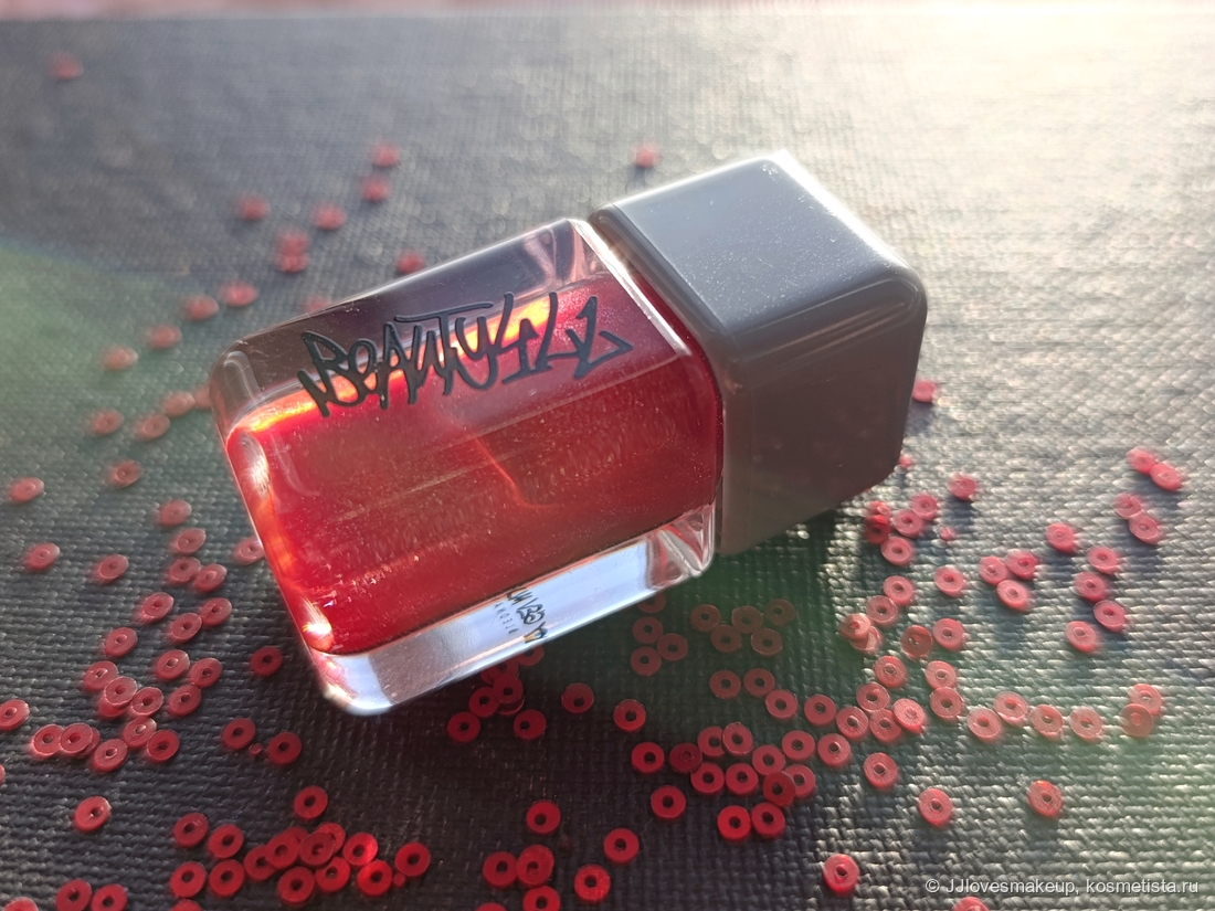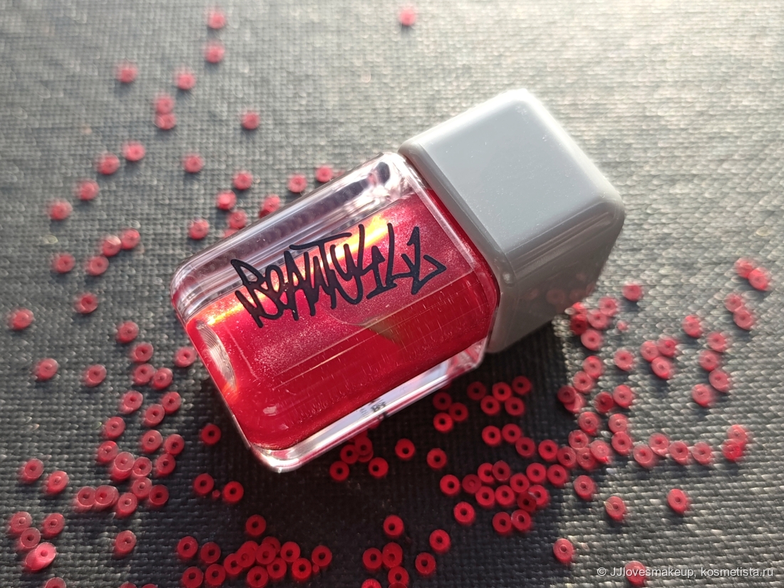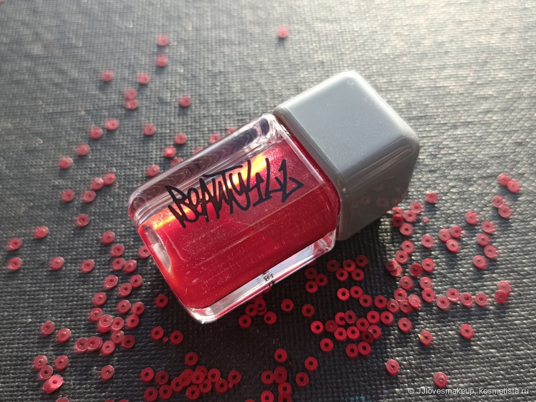 Шиммер/блестки/перламутр: красивый мелкий шиммер, я вижу немного разноцветных блёсток, много красных и серебряных.