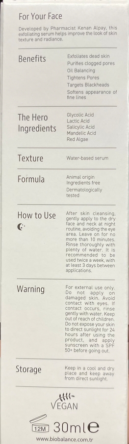 Собственно, почему я сравнила эту пилинг-сыворотку с «кровавым пилингом» от The Ordinary. В первую очередь они похожи по цвету и формату, что сразу бросается в глаза. Да, у The Ordinary выше процент кислот (AHA 30% и BHA 2%) против 10% AHA и 2% BHA у Biobalance. Но при этом The Ordinary значительно агрессивнее: часто вызывает раздражение, покраснение и неприятные ощущения, тогда как Biobalance работает заметно мягче, кожа после него остаётся спокойной, а результат на выходе такой же.