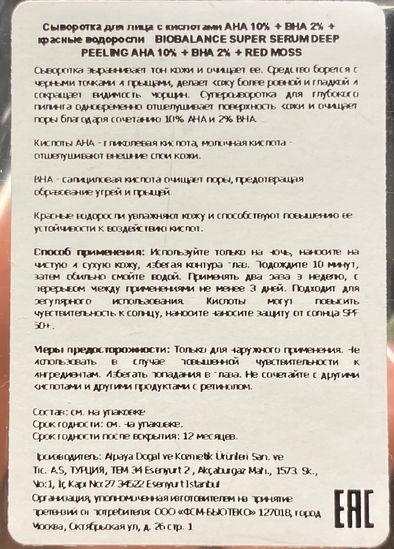 Ну что, бьютиголики со стажем, помните тот самый «кровавый» пилинг The Ordinary, вокруг которого когда-то был настоящий хайп и который должен был стоять почти на каждой полке с уходом? Сегодня хочу рассказать о кислотном пилинге, который лично для меня оказался более удачным вариантом — Сыворотка-пилинг для лица с кислотами и экстрактом красных водорослей SuperSerum Deep Peeling от Biobalance. Это турецкий пилинг с AHA и BHA кислотами, который приятно удивил и по действию, и по комфорту использования.