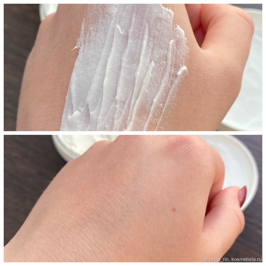 По коже средство распределяется очень хорошо, впитывается быстро, моментально смягчая кожу и оставляя после себя нежную защитную восковую плёночку на руках. И всё бы замечательно, но, видимо, эта плёночка даёт мне парниковый эффект, отчего на ладонях появляется испарина. Пробовала «поиграть» с порцией крема: наносила и погуще, и минимальное количество, однако результат все равно сводился к парниковому эффекту. Но я нашла выход — использую средство исключительно на ночь, промакивая ладони салфеткой после впитывания крема.