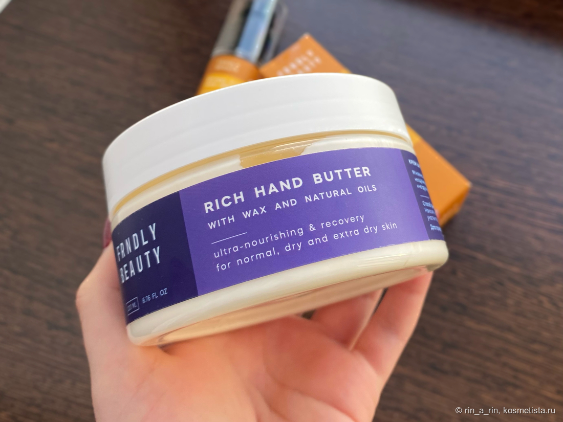Оба средства очень актуальны сейчас, в зимний период. Начну с баттера для рук — Frndly Beauty Rich hand butter with wax and natural oils.