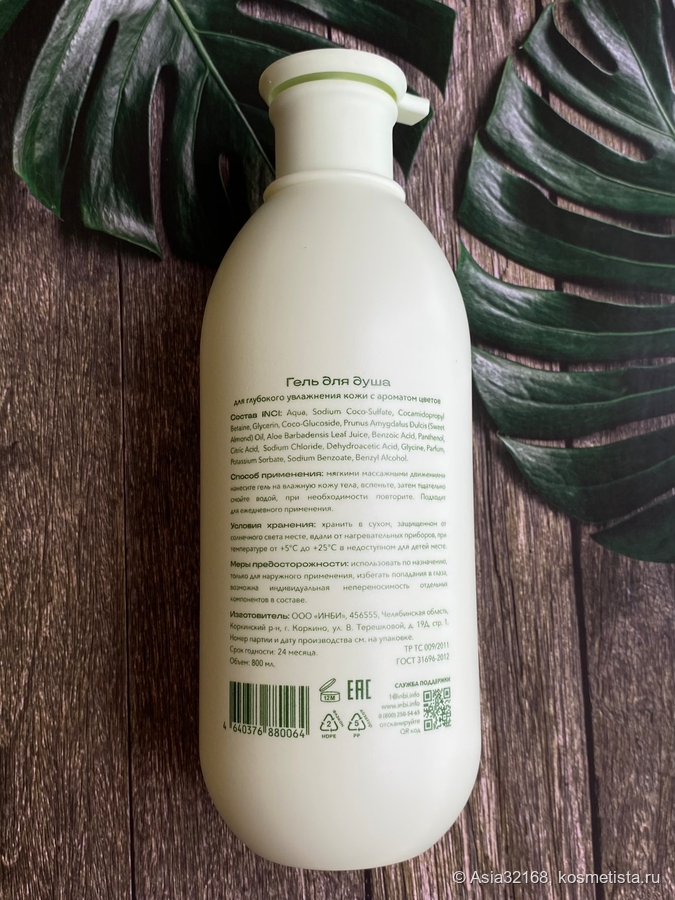 Инби гель для душа с ароматом цветов для глубокого увлажнения кожи: масло сладкого миндаля, гель алоэ-вера, пантенол (малина, пион, ваниль)