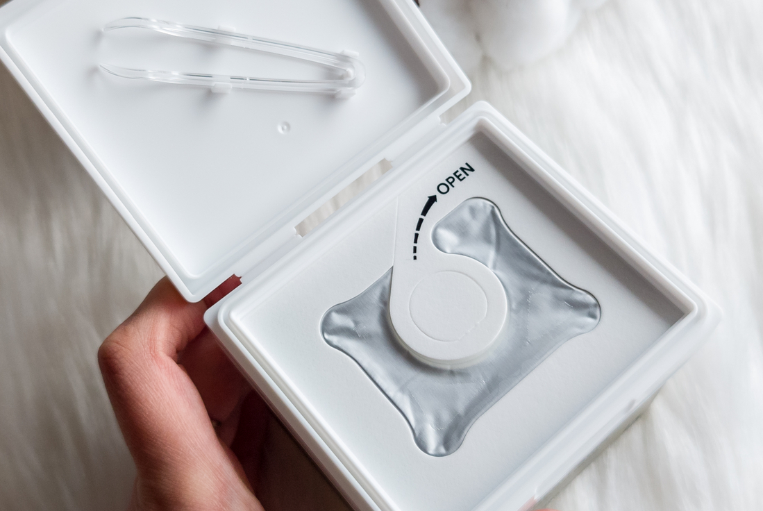 Упаковка представляет из себя баночку из пластика с прочной крышкой, которая надежно убережет содержимое от протекания, я проверяла дорогой в тысячу километров. На крышке с внутренней стороны находится пинцет, позволяющий гигиенично захватывать пэды, а в основном отсеке заглушка из фольги. Тянем за язычок и открываем доступ к пэдам.