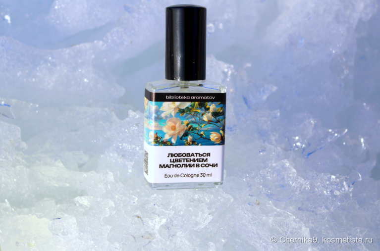 Если магнолию заморозить, а кубики льда залить лёгким лимонадом, вы получите одеколон «Любоваться магнолиями в Сочи». Это хрустальный, звенящий сладкий хрусталь с лёгким бежевым оттенком шампанского. Середина огромной магнолии, к которой подходишь с лимонными леденцами.